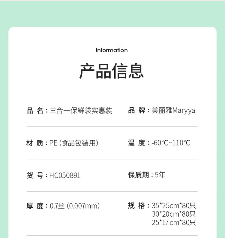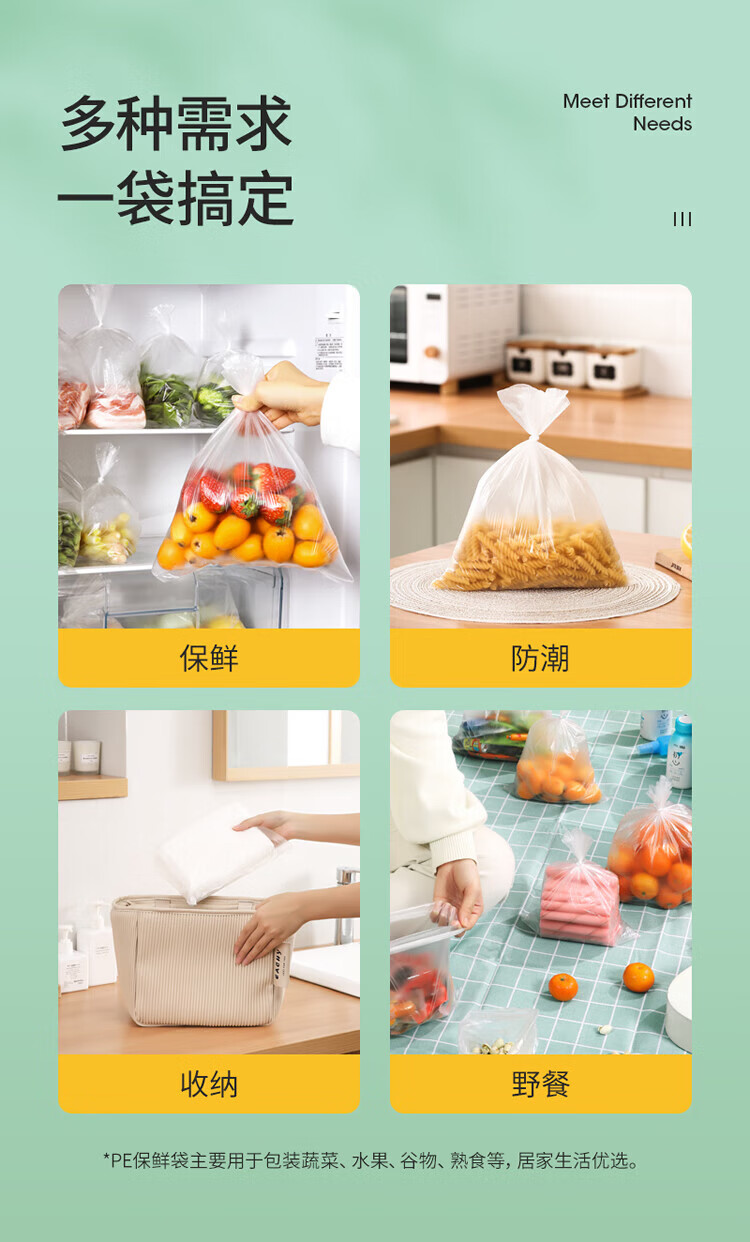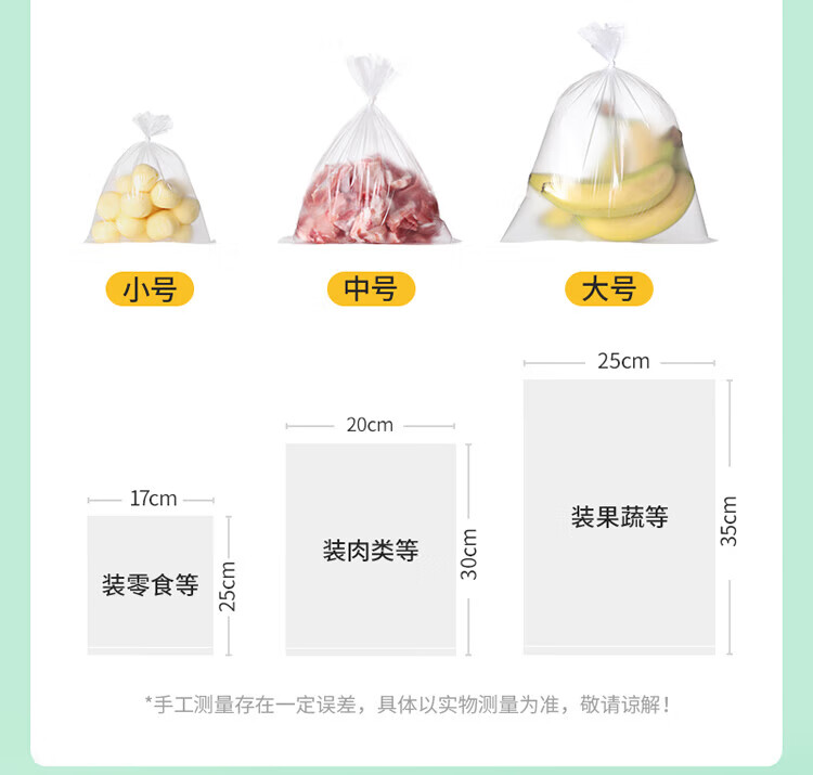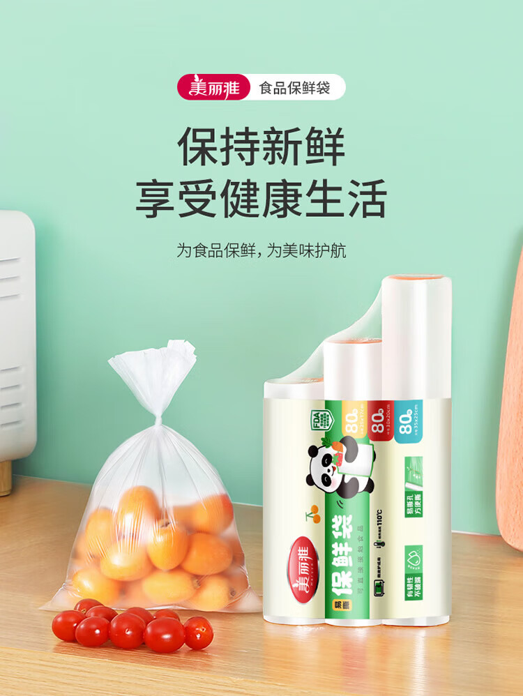Meiya food-grade fresh-keeping bags, 240 pieces, disposable plastic packaging bags, large, medium and small, 80 pieces each, microwaveable