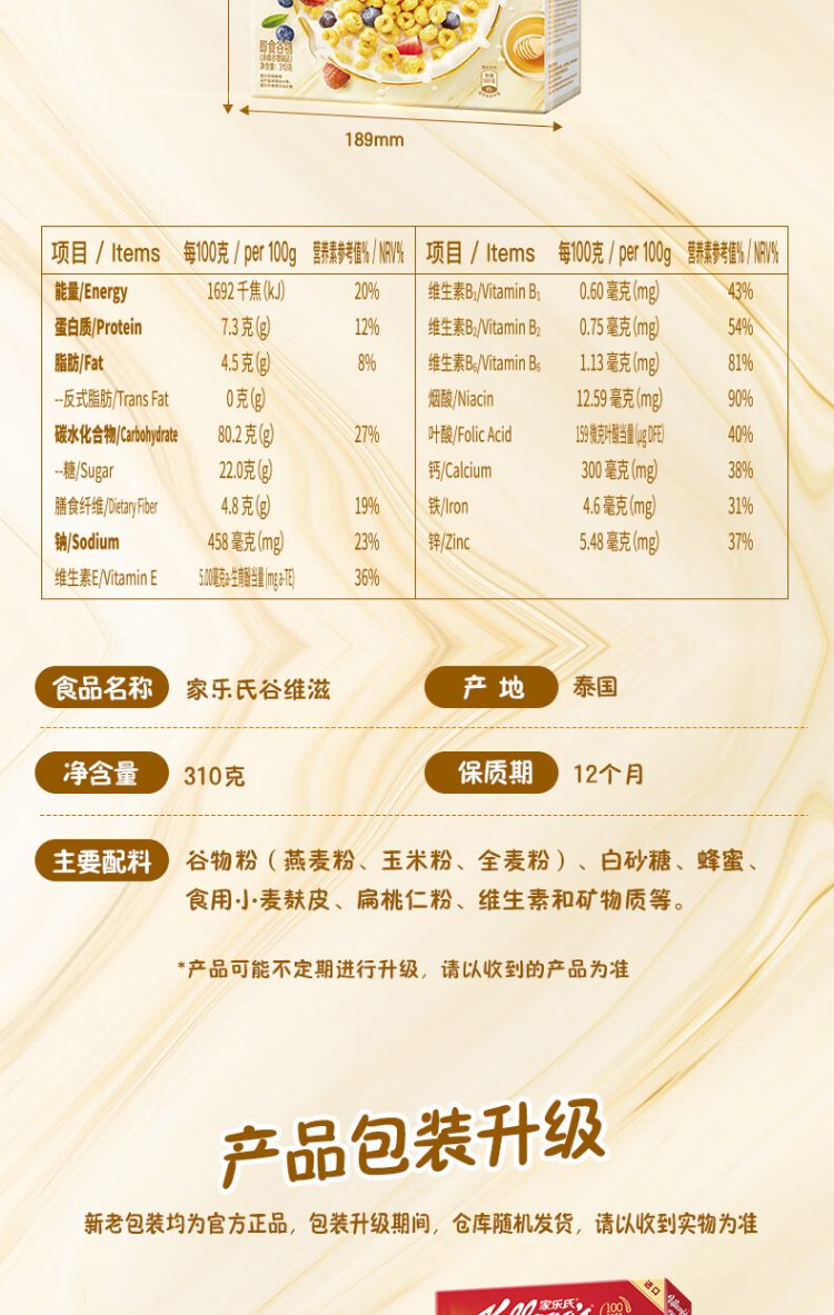 Kellogg's imported Guvitz 310g children's nutritional cereal oatmeal cereal rings ready-to-eat breakfast meal replacement teething snacks