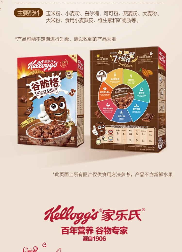 Kellogg's imported cereal crisps 150g/box children's nutritional chocolate cocoa cereal crispy ready-to-eat cereal breakfast snacks