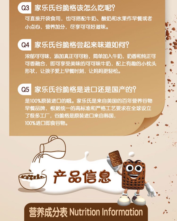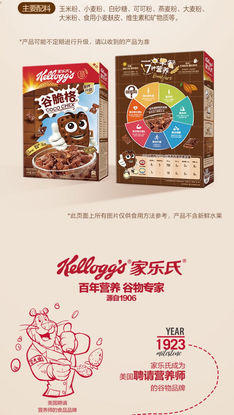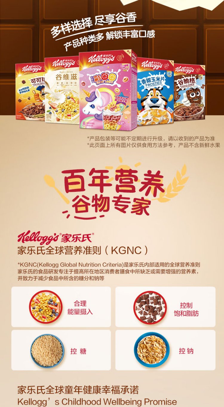 Kellogg's imported cereal crisps 300g/box children's nutrition chocolate cocoa cereal crisp ready-to-eat cereal breakfast afternoon tea