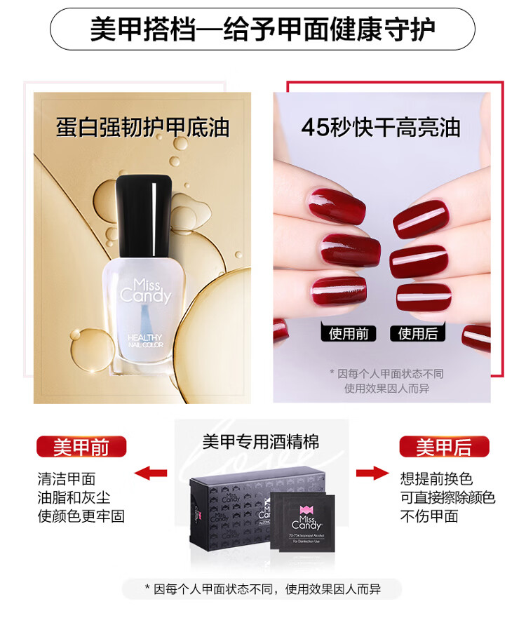 Miss Candy whitening 15ml nail polish no-bake long-lasting tear-off temperament red New Year's manicure semi-transparent cherry NJ003