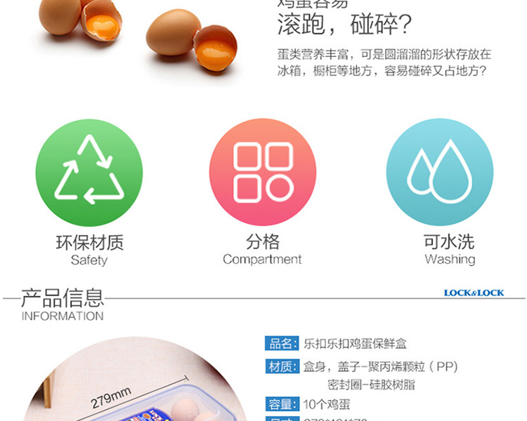 LOCK&LOCK plastic crisper egg carton storage box refrigerator storage box can hold 10 eggs