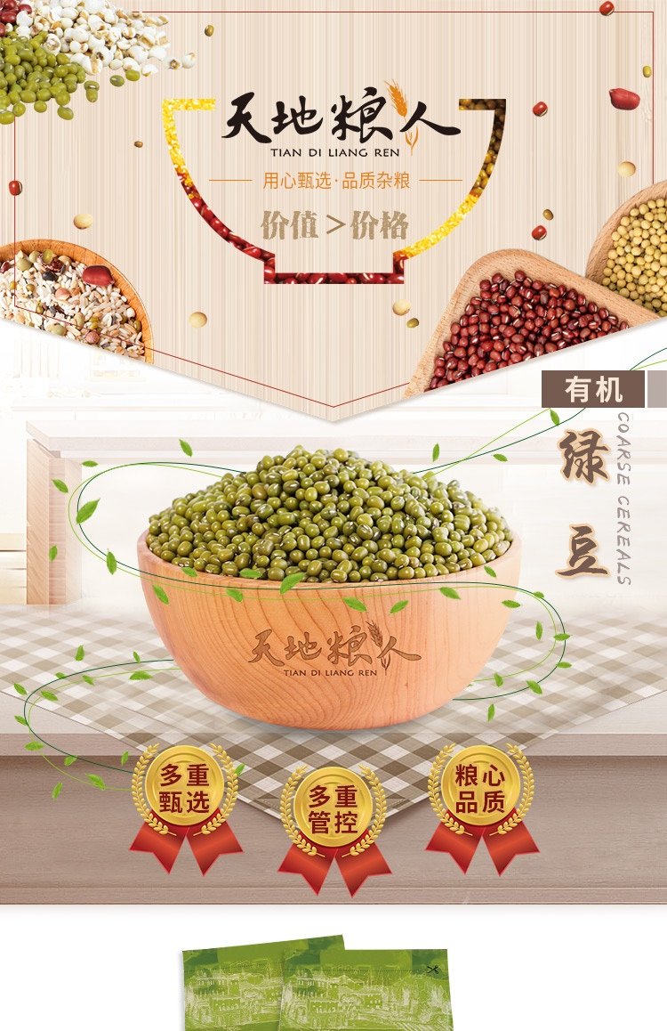Tiandi Liangren organic mung beans 2.5 pounds (can be sprouted, can be made into soy milk, whole grains)