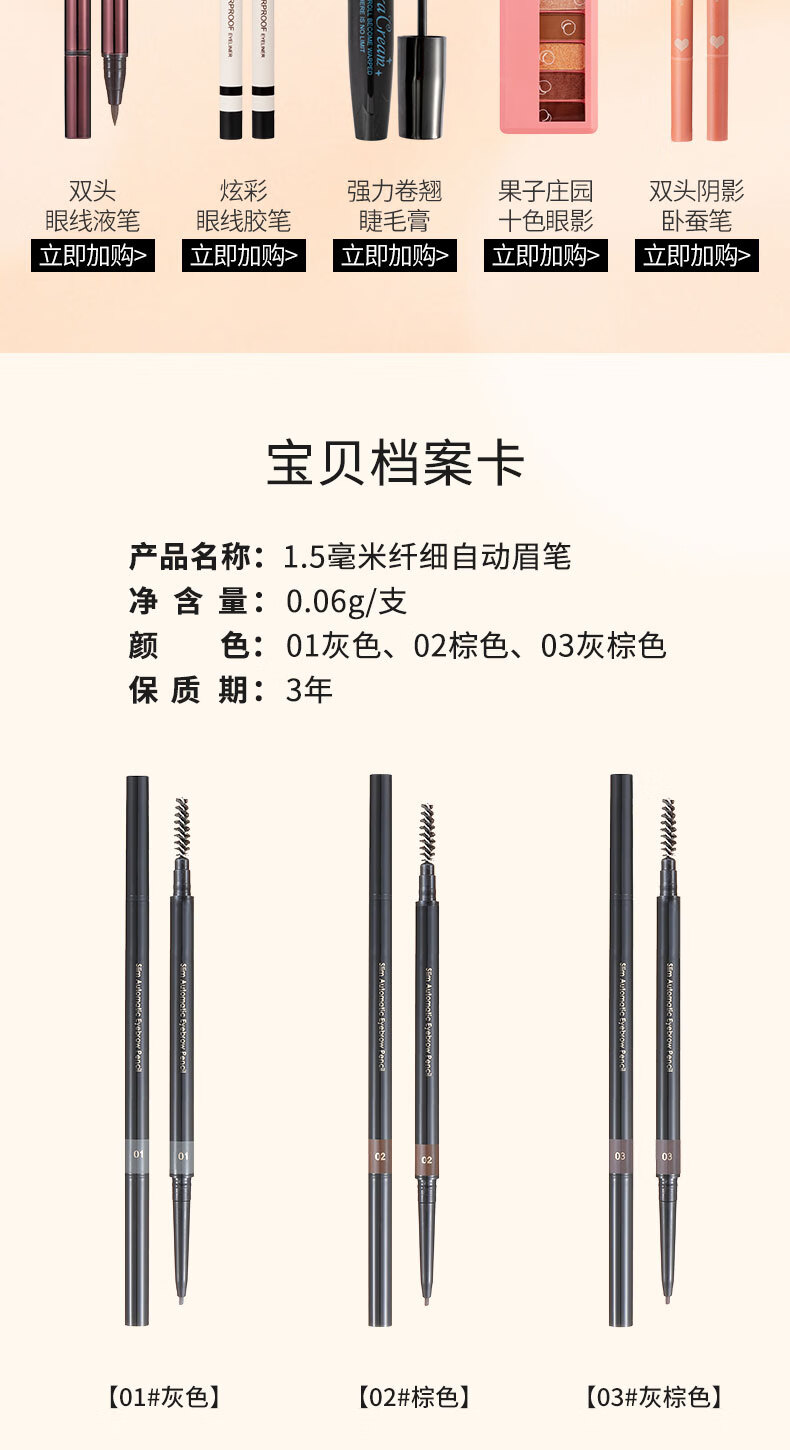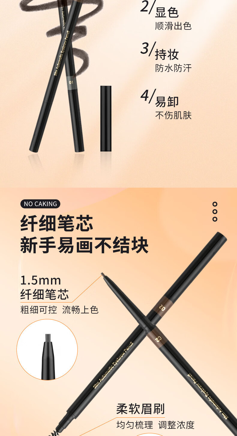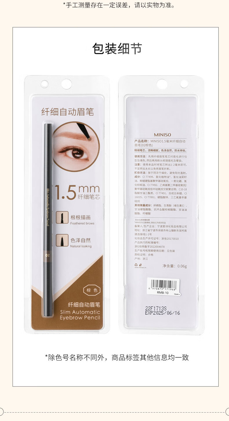 MINISO 1.5mm ultra-fine automatic eyebrow pencil is waterproof, sweat-proof and does not fade, gray 1 pack 0.06g