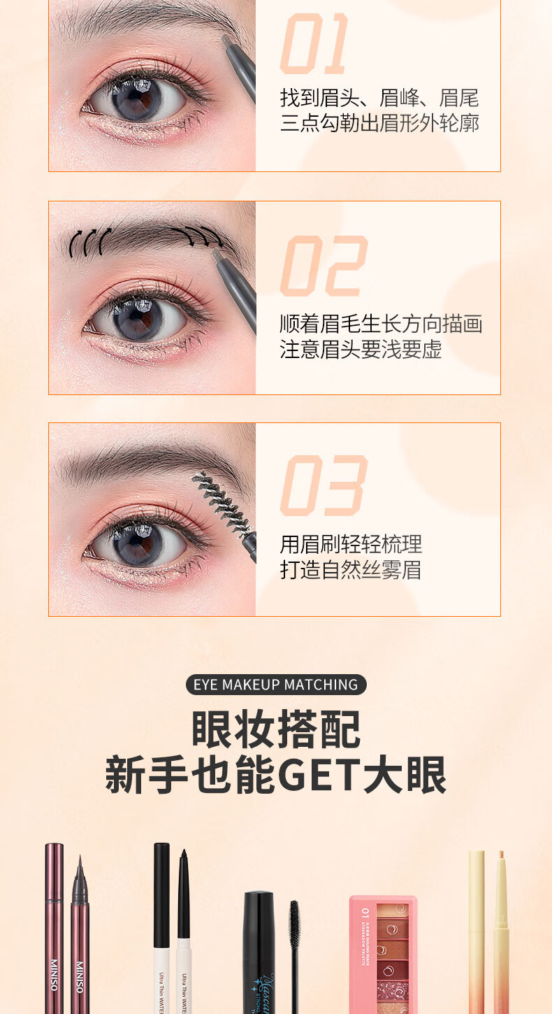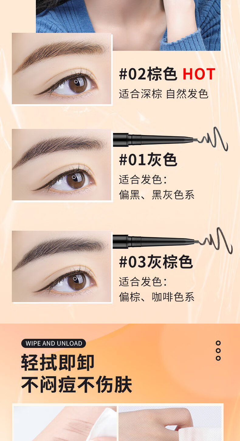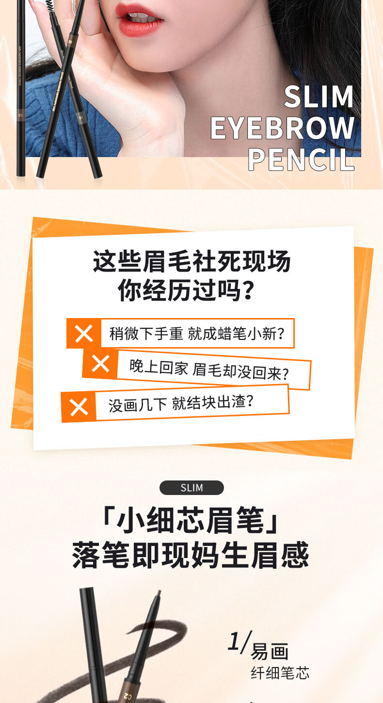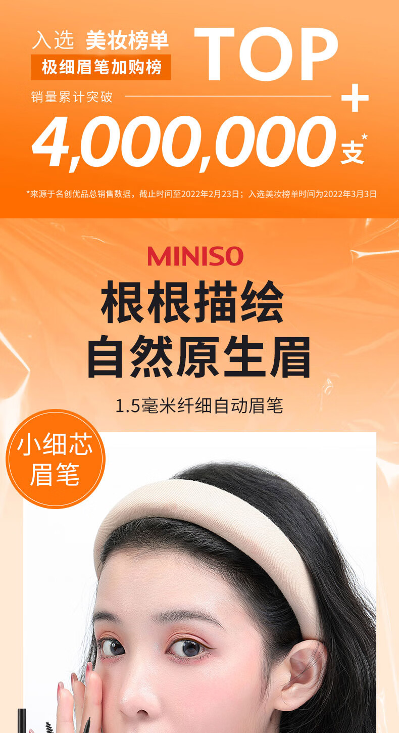 MINISO 1.5mm ultra-fine automatic eyebrow pencil is waterproof, sweat-proof and does not fade, gray 1 pack 0.06g