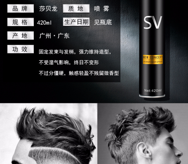 Saberon new concept charm dry gel 420ml hairspray styling spray hair long-lasting styling for men and women