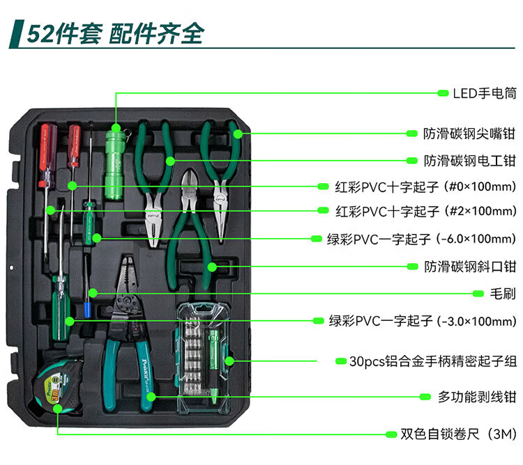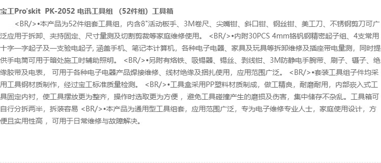 Baogong (Pro sKit) PK-2052 Household/Repair/Tool Set Multifunctional Telecommunications Tool 52-piece Set
