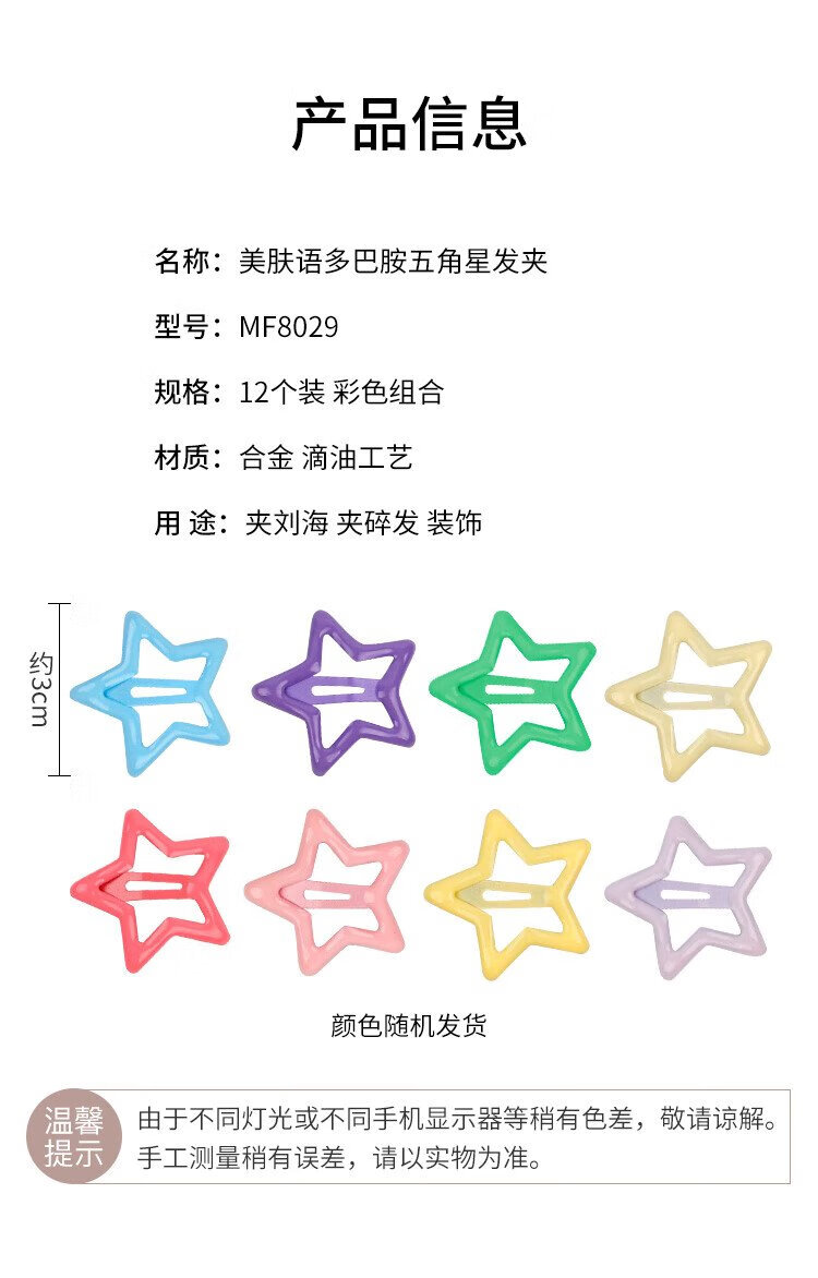 Skin language children's hairpin dopamine five-pointed star hairpin 12 pieces of broken hair BB clip hairpin baby hairpin clip MF8029