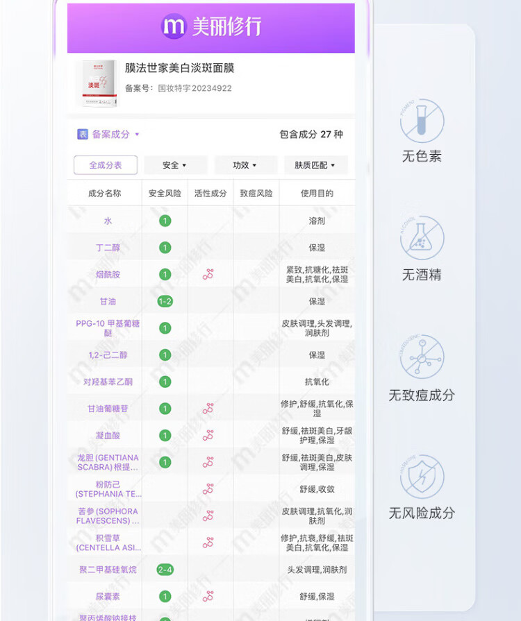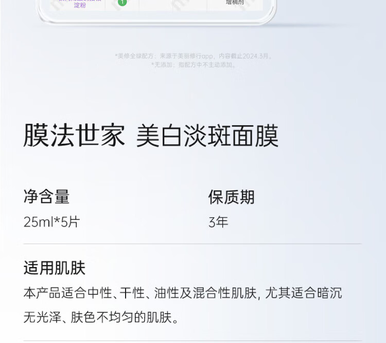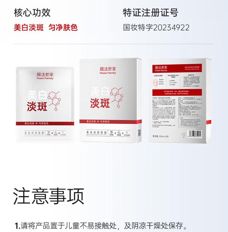 Mask Fa Shijia Whitening and Spot Facial Mask, Soothing, Moisturizing, Hyaluronic Acid, 377 Niacinamide, Removes Yellowing and Brightens Skin