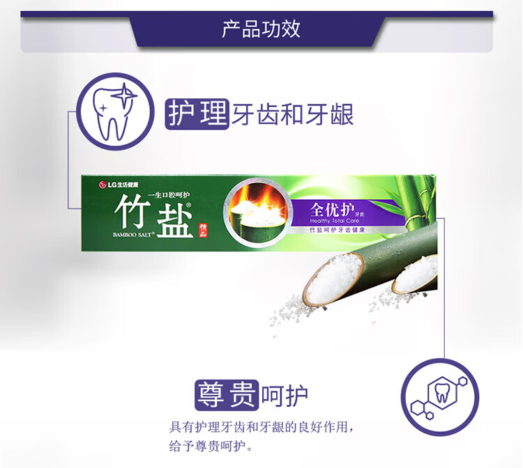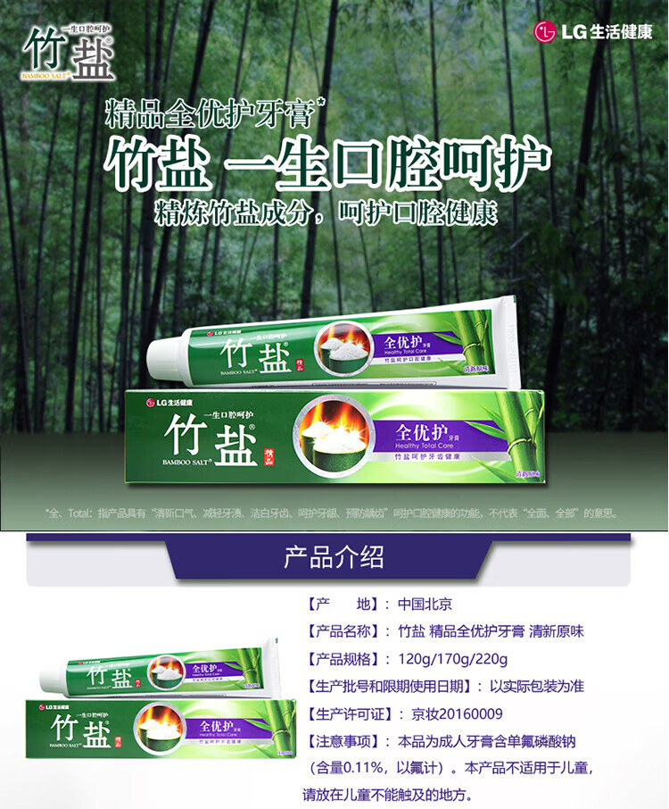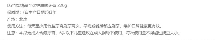 Bamboo Salt LG Quanyou Toothpaste 220g*1 Gum Care Refreshing Taste Reduces Teeth Stains and Cleans the Mouth