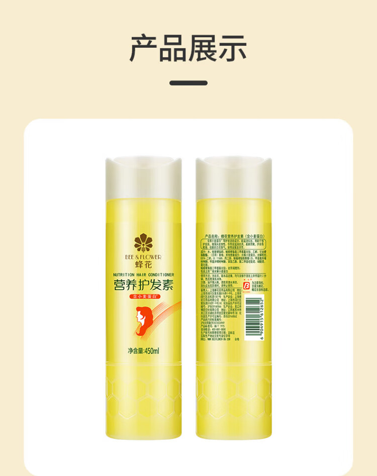 Bee Flower Smooth Conditioner 450ml Wheat Protein Nutritional Conditioner Repair Frizzy, Dry and Hydrating