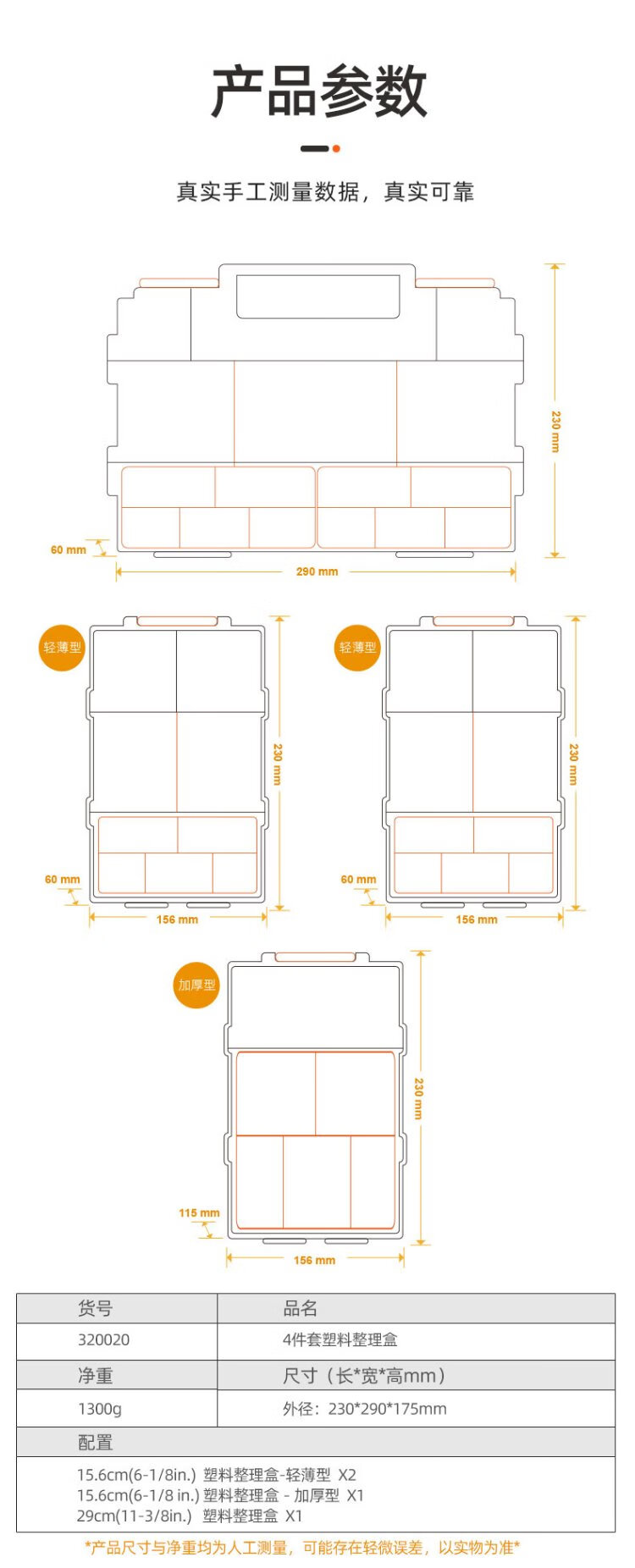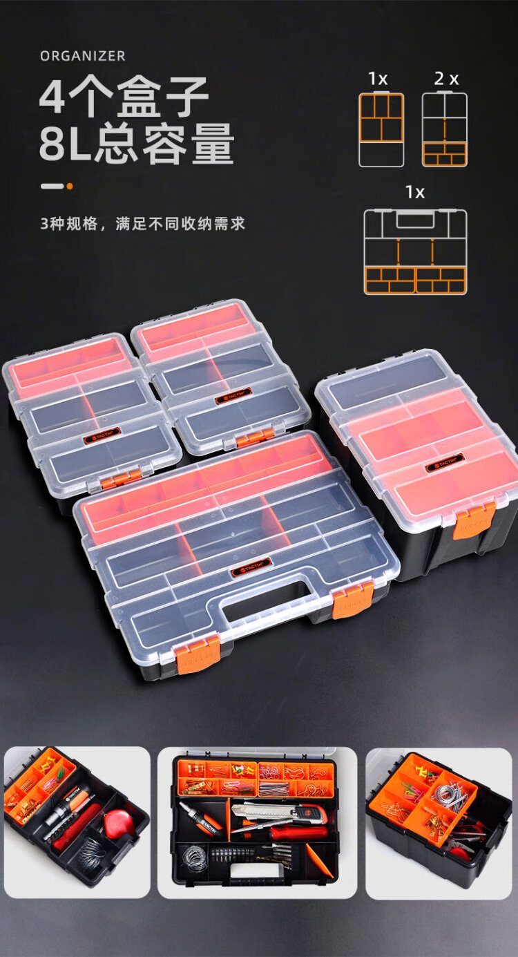 Tactix parts box 4-piece set screw box combined tool box classification box plastic box storage box household 320020