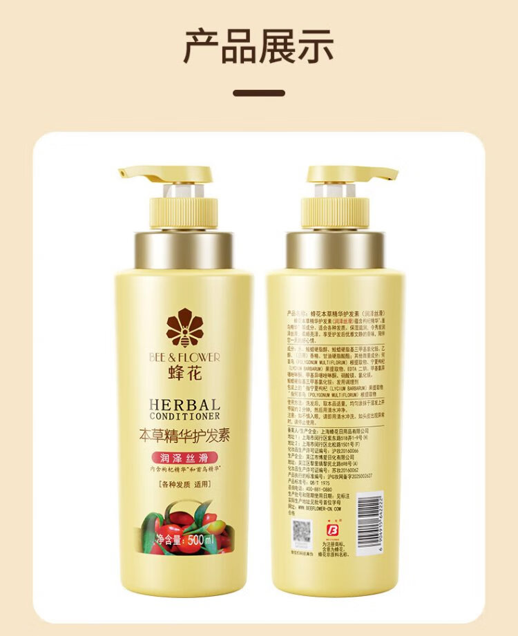 Bee Flower Herbal Essence Conditioner 500ml Moisturizes, Silks, Frizzy and Split Ends, Improves Damage, Hydrates and Smoothes Women and Men