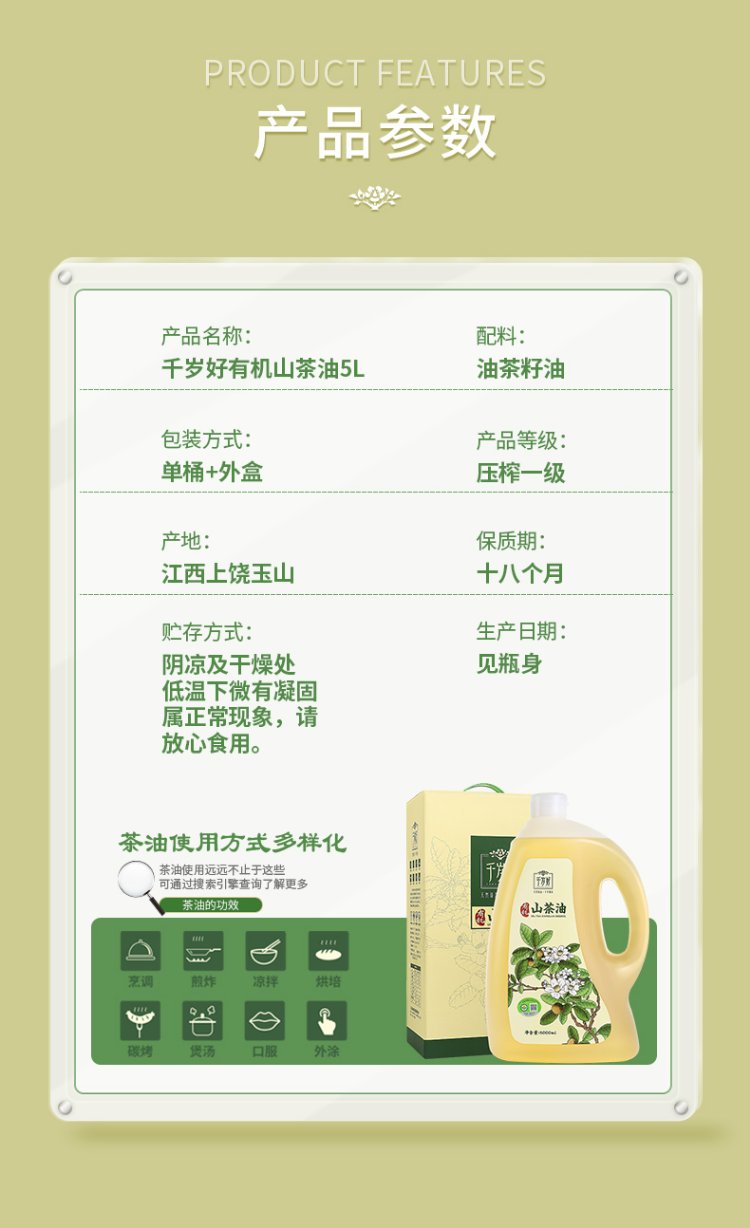 Chitosehao Fidelity Camellia Oil Camellia Oil Organic Camellia Seed Oil Pressed Grade One Edible Oil 5L