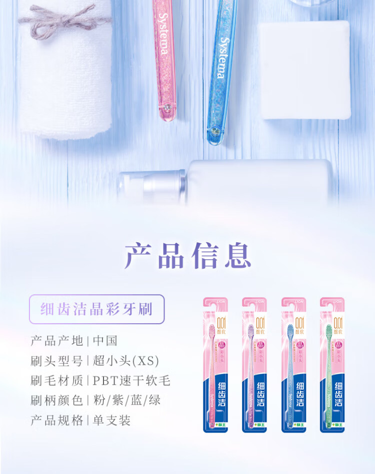 Lion Fine Teeth Cleaner 0.01 Crystal Color Toothbrush 4 soft-bristle compact brush heads, meticulous gum protection, oral care home pack