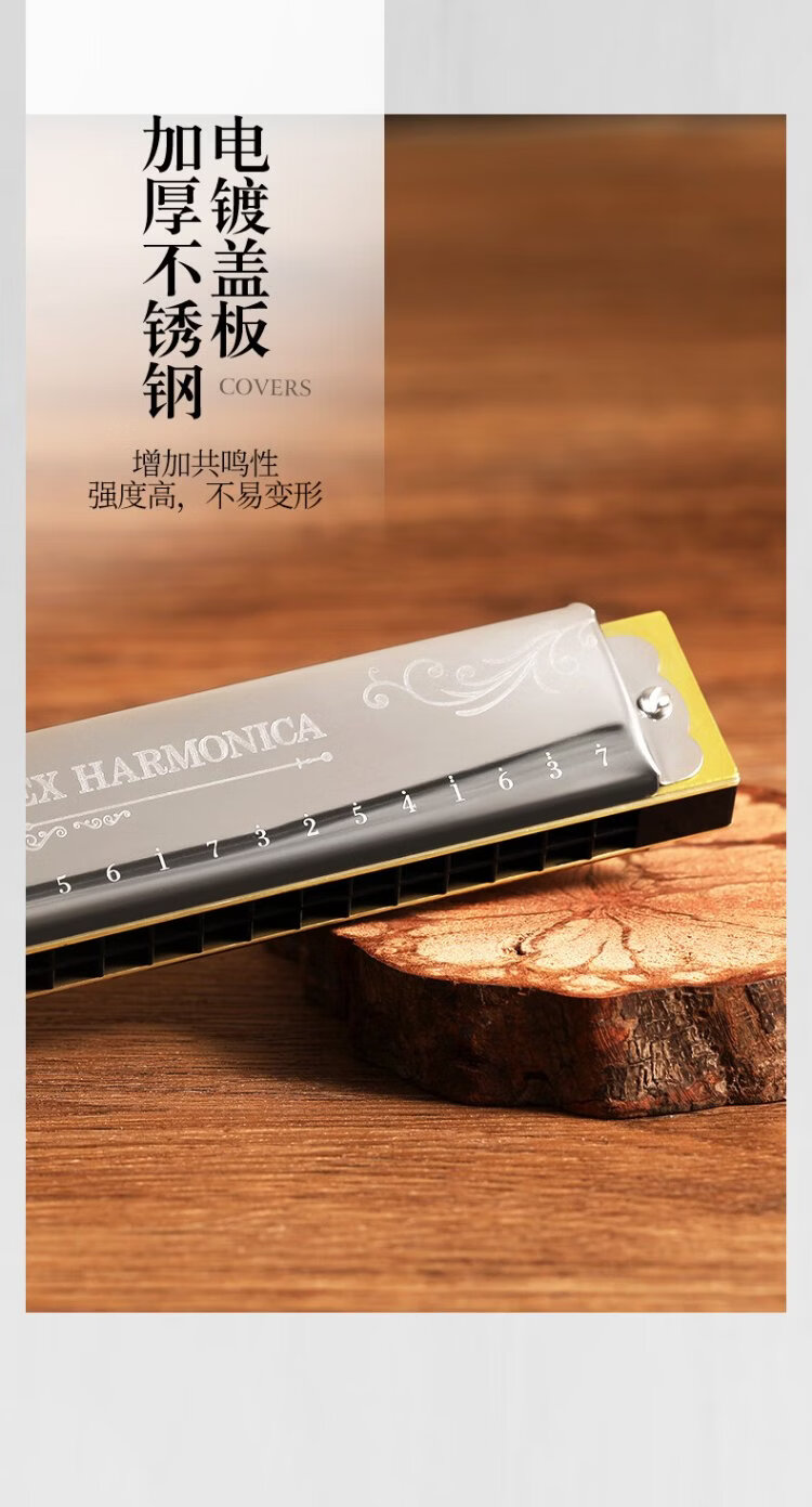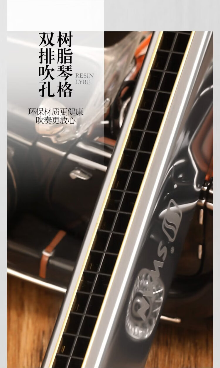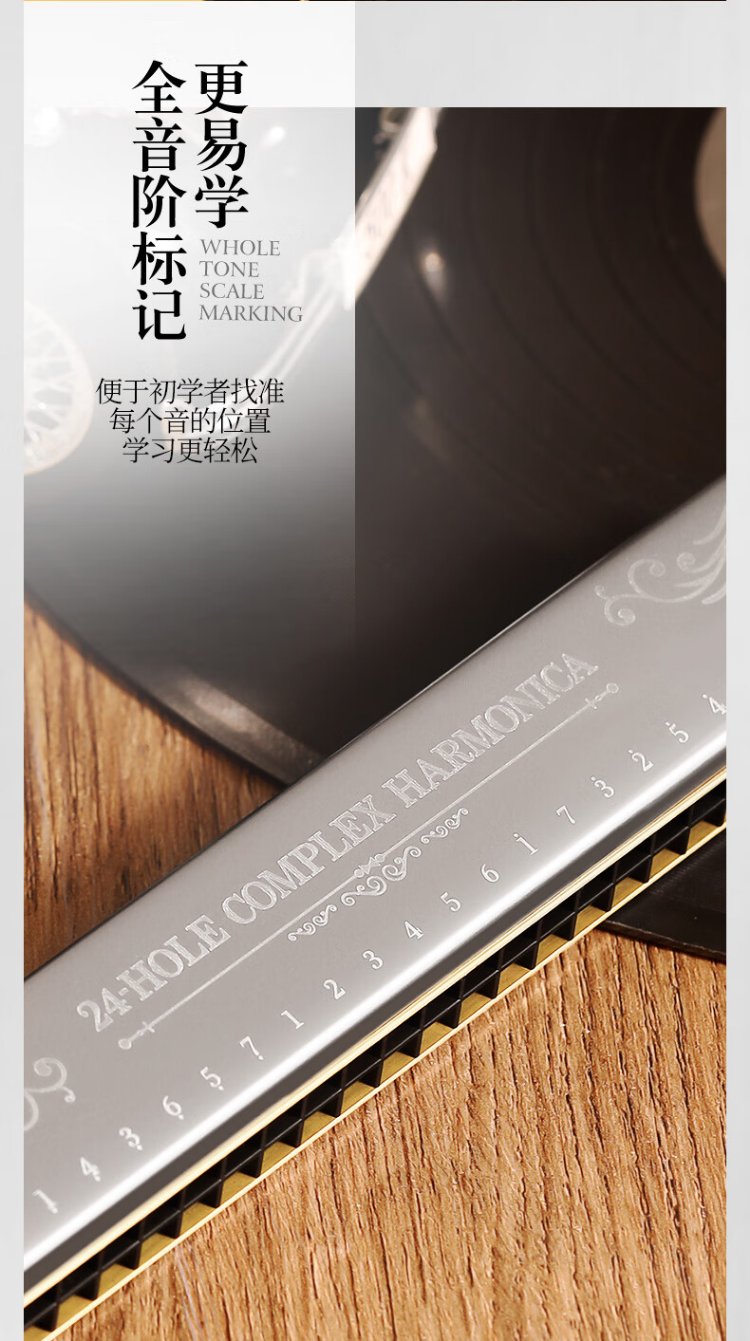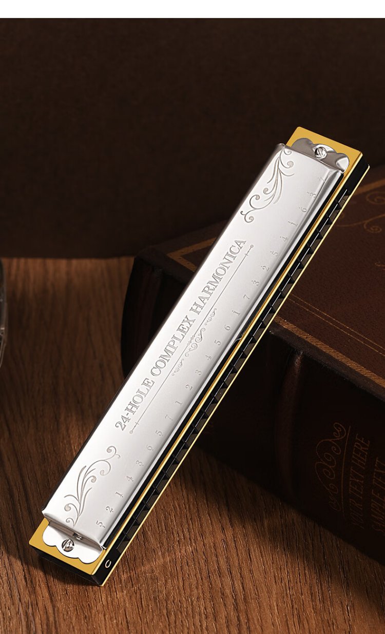 Swan (SWAN) 24-hole polyphonic playing harmonica in C key with phonetic markings for students and adults teaching recommended musical instrument silver