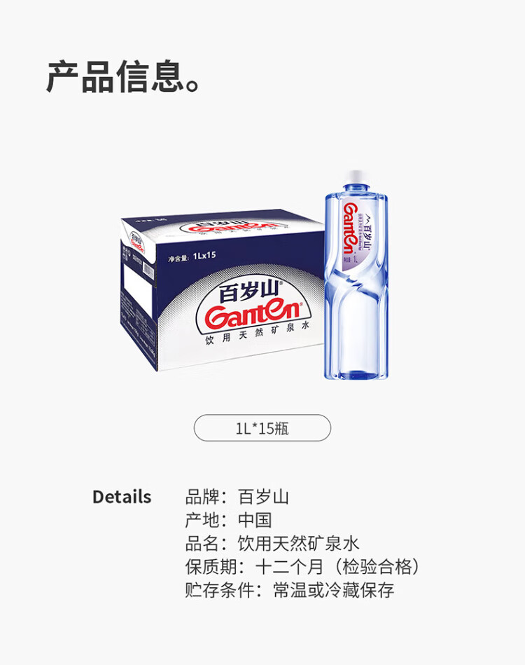 Jingtian Baisuishan Drinking Natural Mineral Water 1L*15 Bottles Full Box Family Healthy Drinking Water