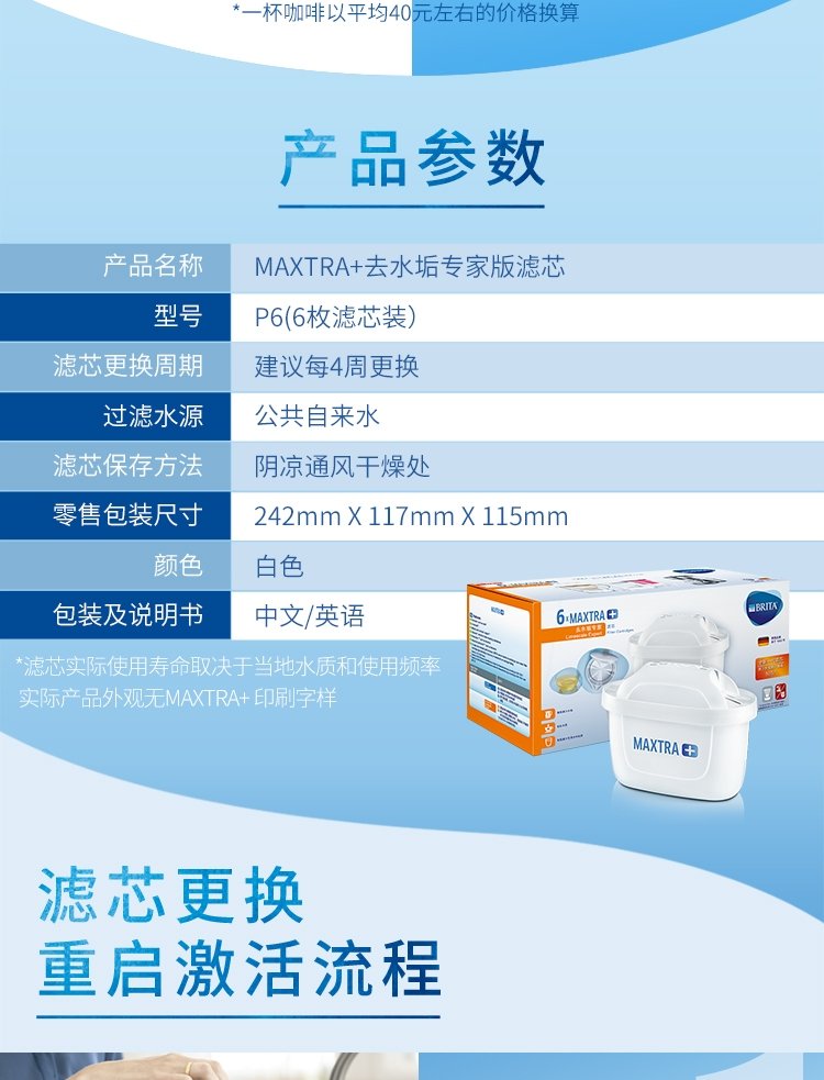 BRITA household water filter kettle, water kettle filter element, Maxtra multi-effect filter element, 6 pieces