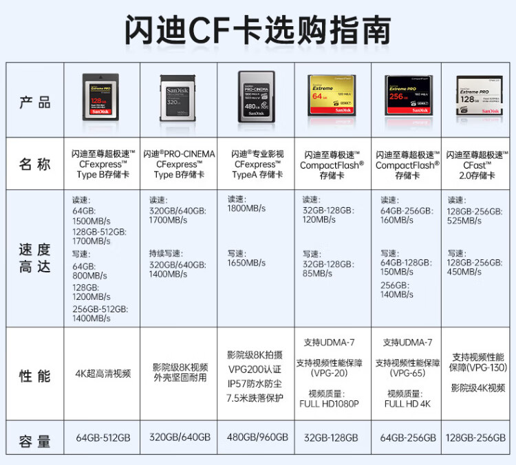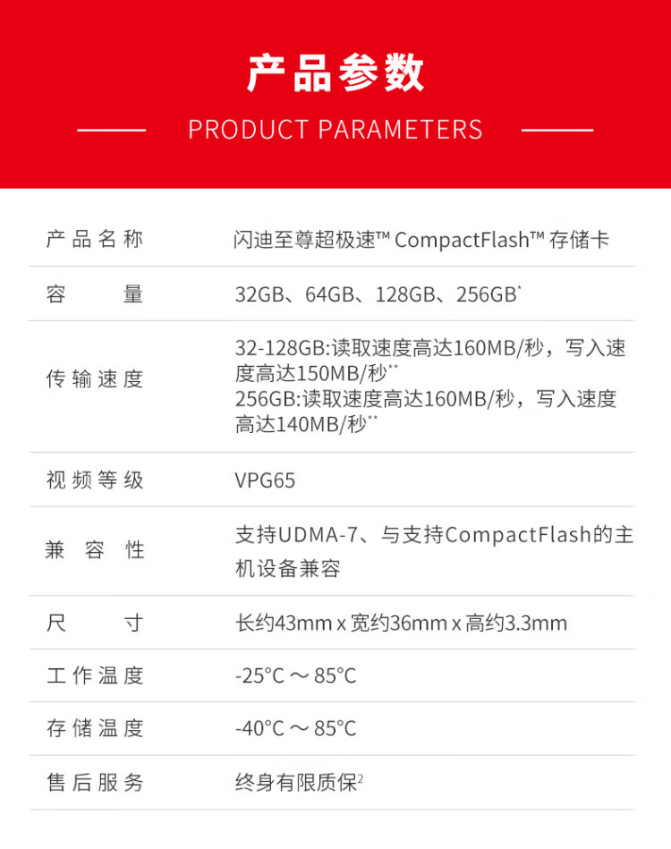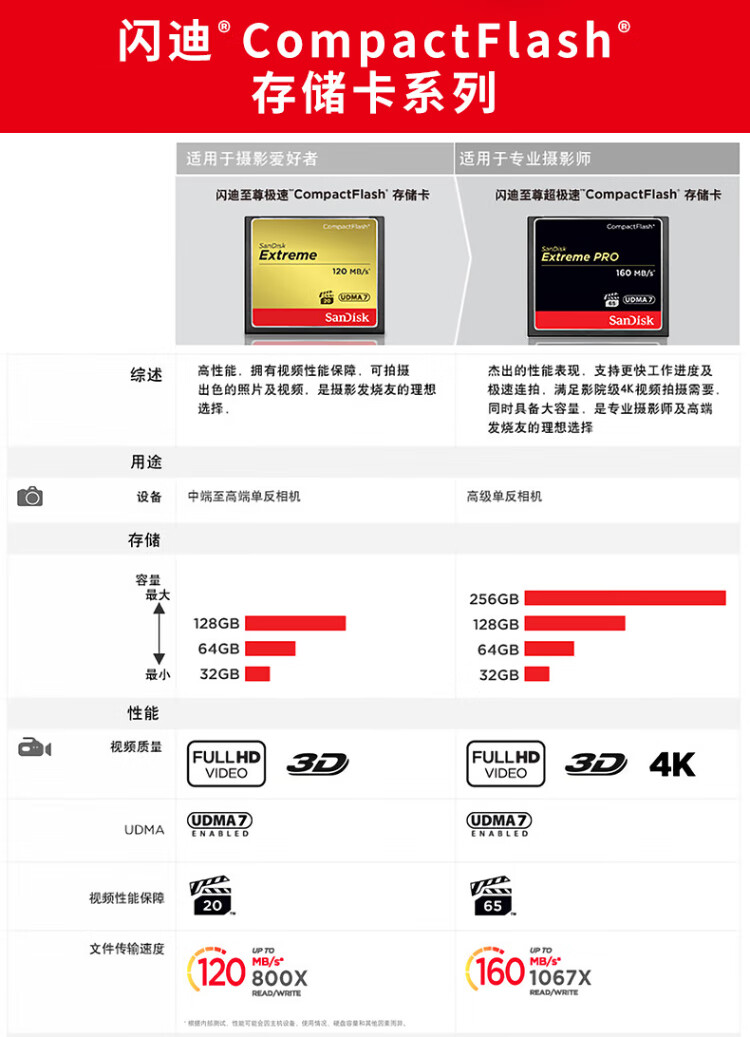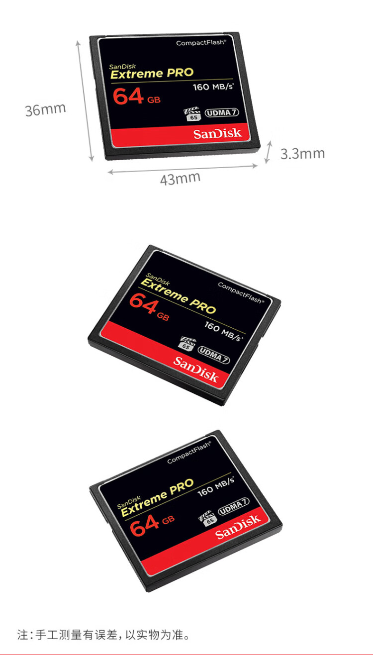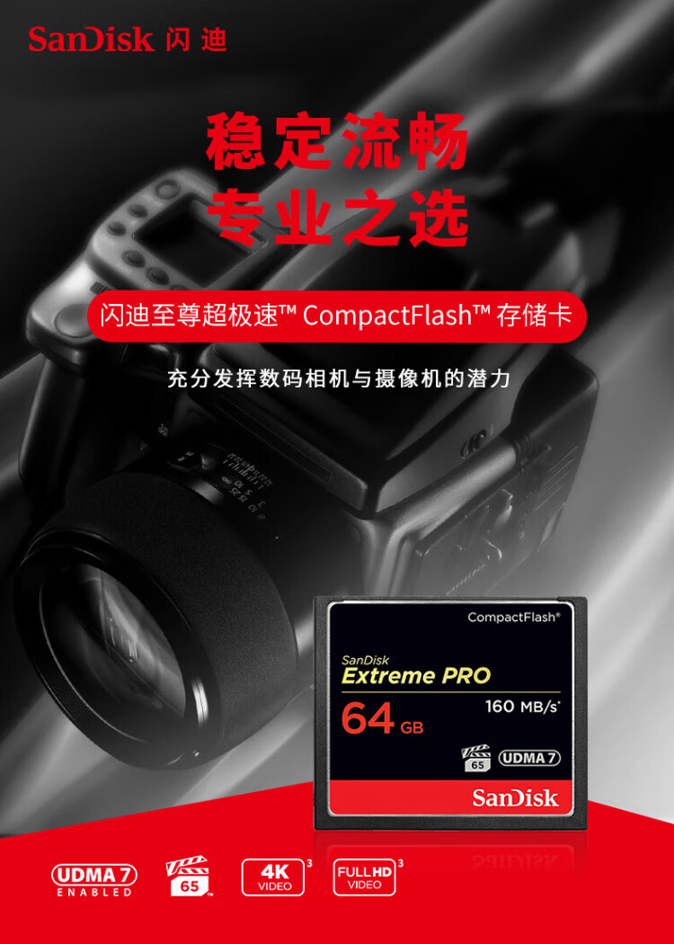 SanDisk 64GB CF (CompactFlash) memory card 4K 3D UDMA-7 ultra-fast camera memory card reading speed 160MB/s writing speed 150MB/s
