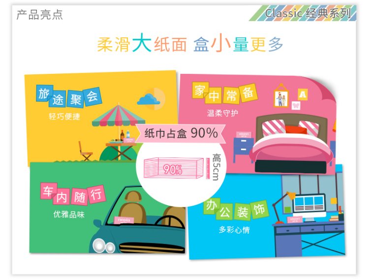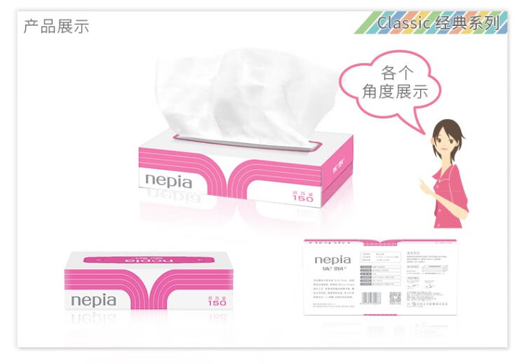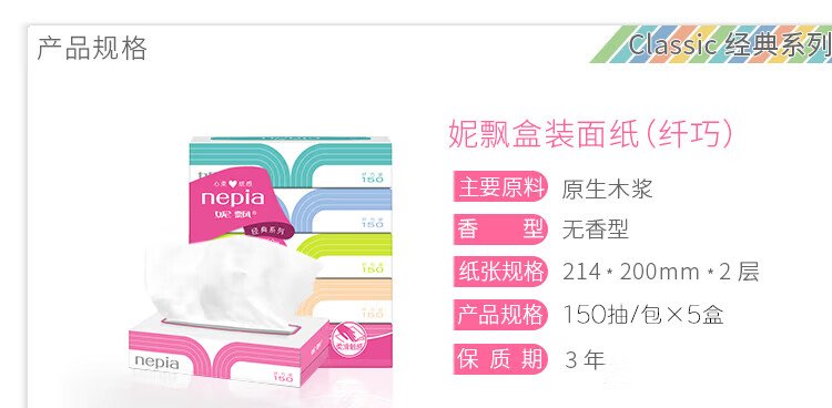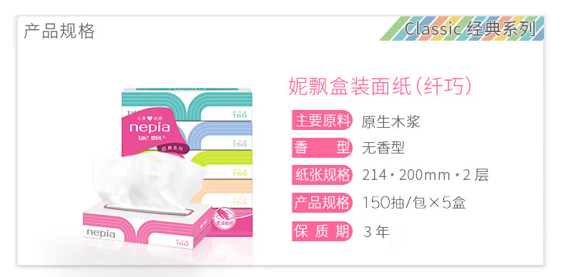 Nepia classic series tissue paper 2 layers 150 sheets * 5 boxes slim box tissue paper napkins household toilet paper