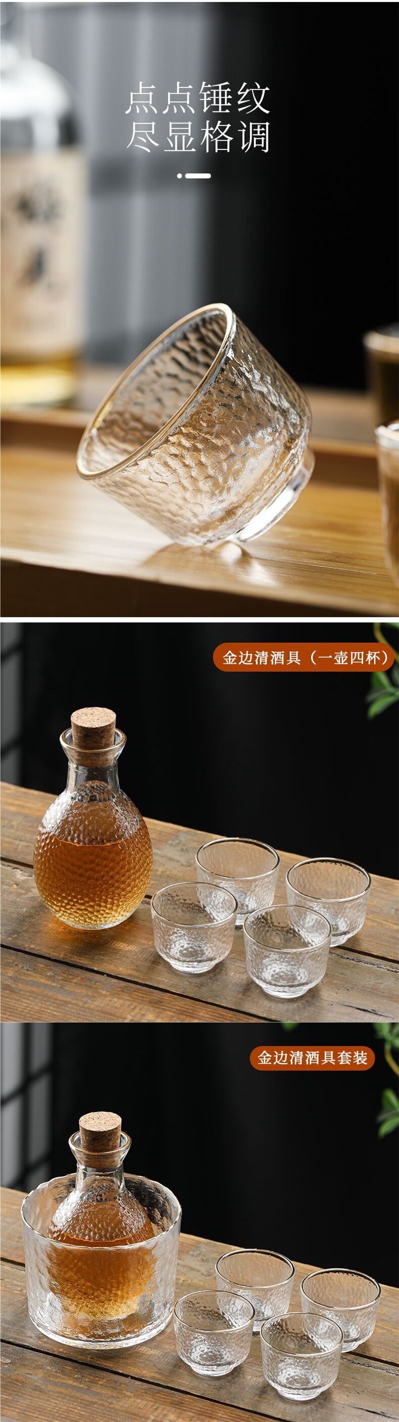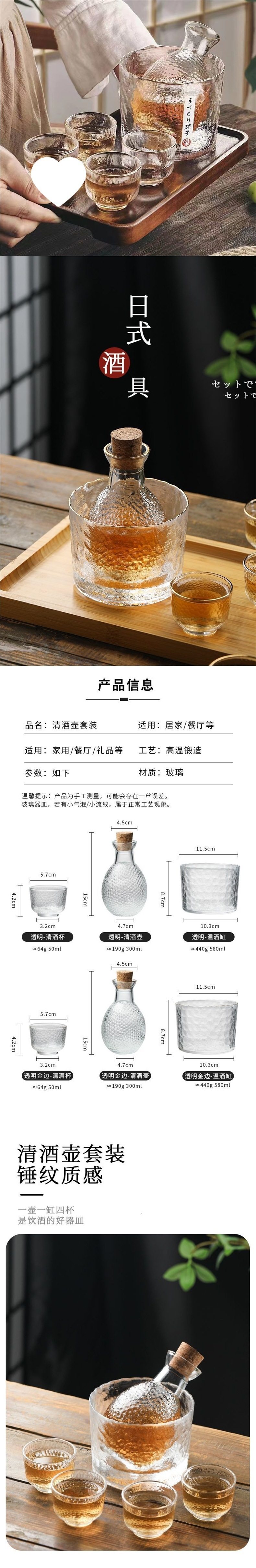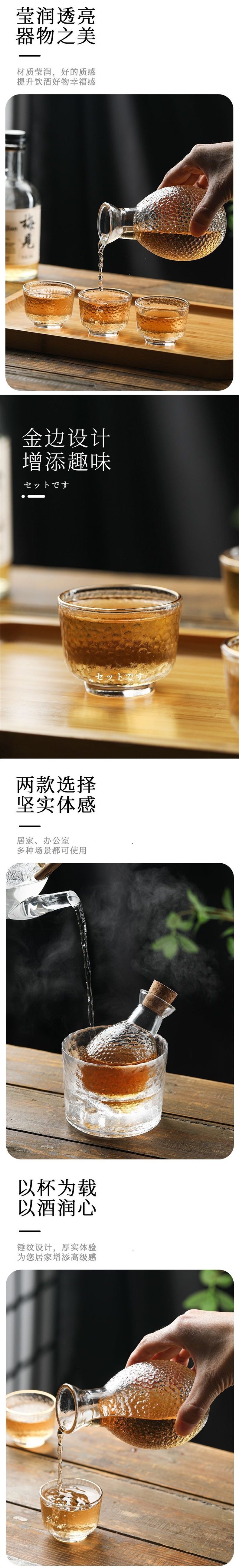 | Color | Transparent sake glass single pack,[seven-piece set, transparent model] one pot + four cups + wine warmer + cork,[six-piece set of transparent models] one pot + four wine glasses + cork,[seven-piece set with gold rim] one pot + four cups + wine warmer + cork,[six-piece set with gold rim] one pot + four cups + cork,[seven-piece frosted set] one pot + four cups + wine warmer + cork,[six-piece frosted set] one pot + four cups + cork,Gold rim sake glass single pack |