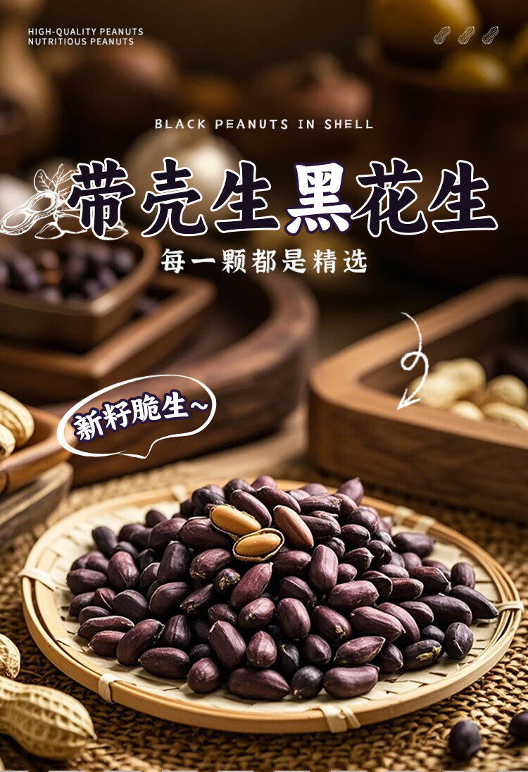 Authentic Selenium-Rich Raw Black Peanuts in Shells, Rich in Anthocyanins, Authentic Taste, Original Sweet Snacks