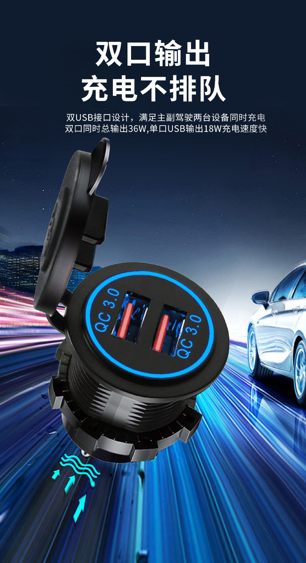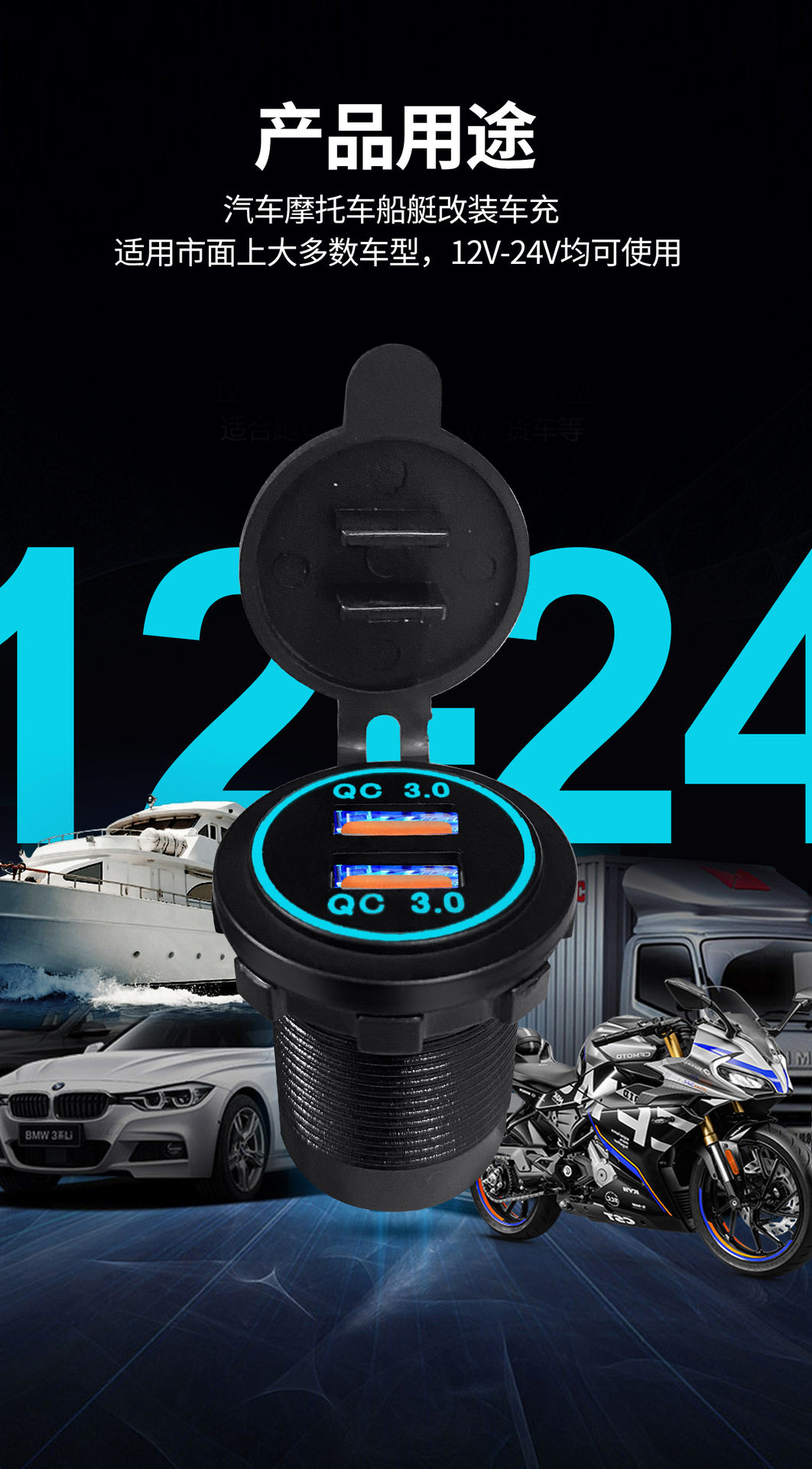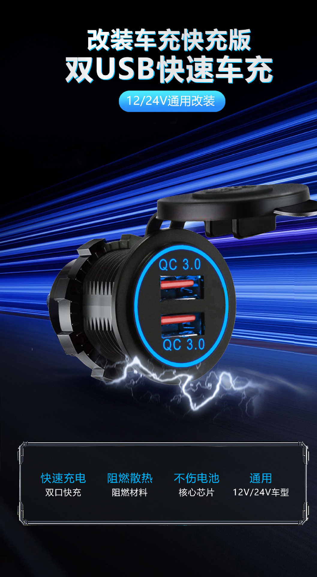 Wholesale Cross-Border Car Electrical Appliances Modified Motorcycle Universal Car Charger Super Fast Charging Modified USB Charging Port