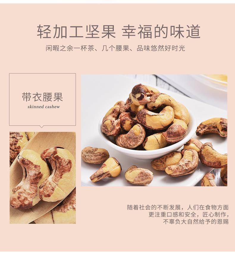 | Packaging specifications | Cashew nuts (charcoal roasted) 80g trial version,Cashew nuts (original flavor) 80g early adopter version,A combination of three cans of cashew nuts (original + purple skin + charcoal roasted [750g in total],[grade a extra large] charcoal-roasted cashew nuts (half a pound),ćgrade a extra largećcharcoal roasted cashew nuts (0.5kg pack),ćgrade a extra largećcharcoal roasted cashew nuts (1.0kg pack),ćgrade a extra largećoriginal cashew nuts (0.5kg pack),ćgrade a extra largećoriginal cashew nuts (1.0kg pack),ćgrade a extra largećpurple cashew nuts (0.5kg pack) |