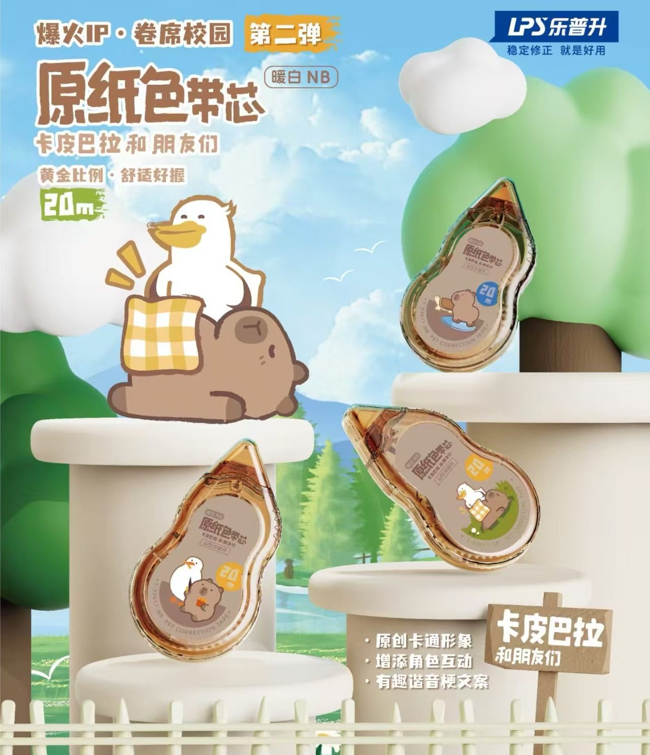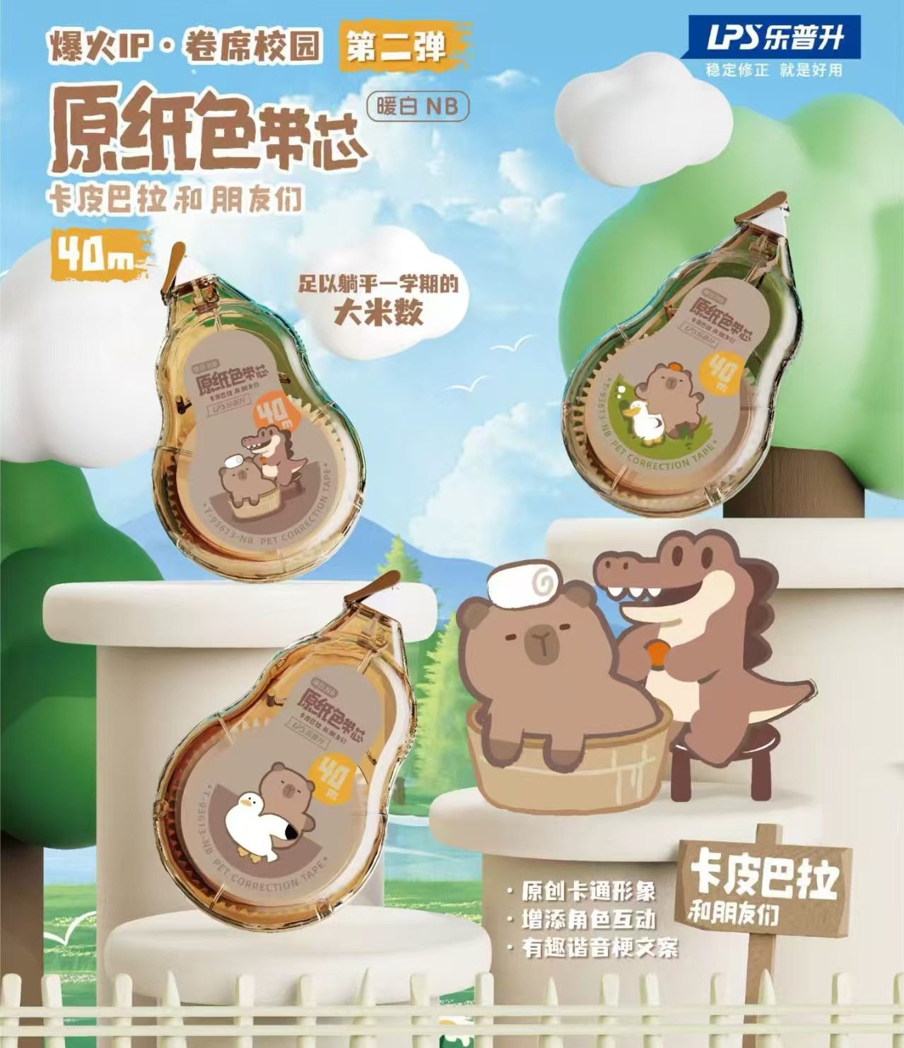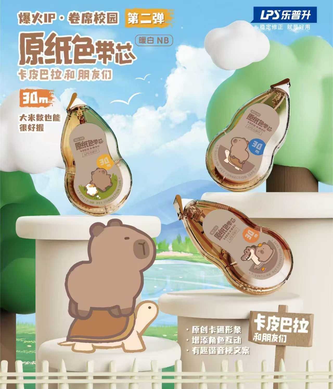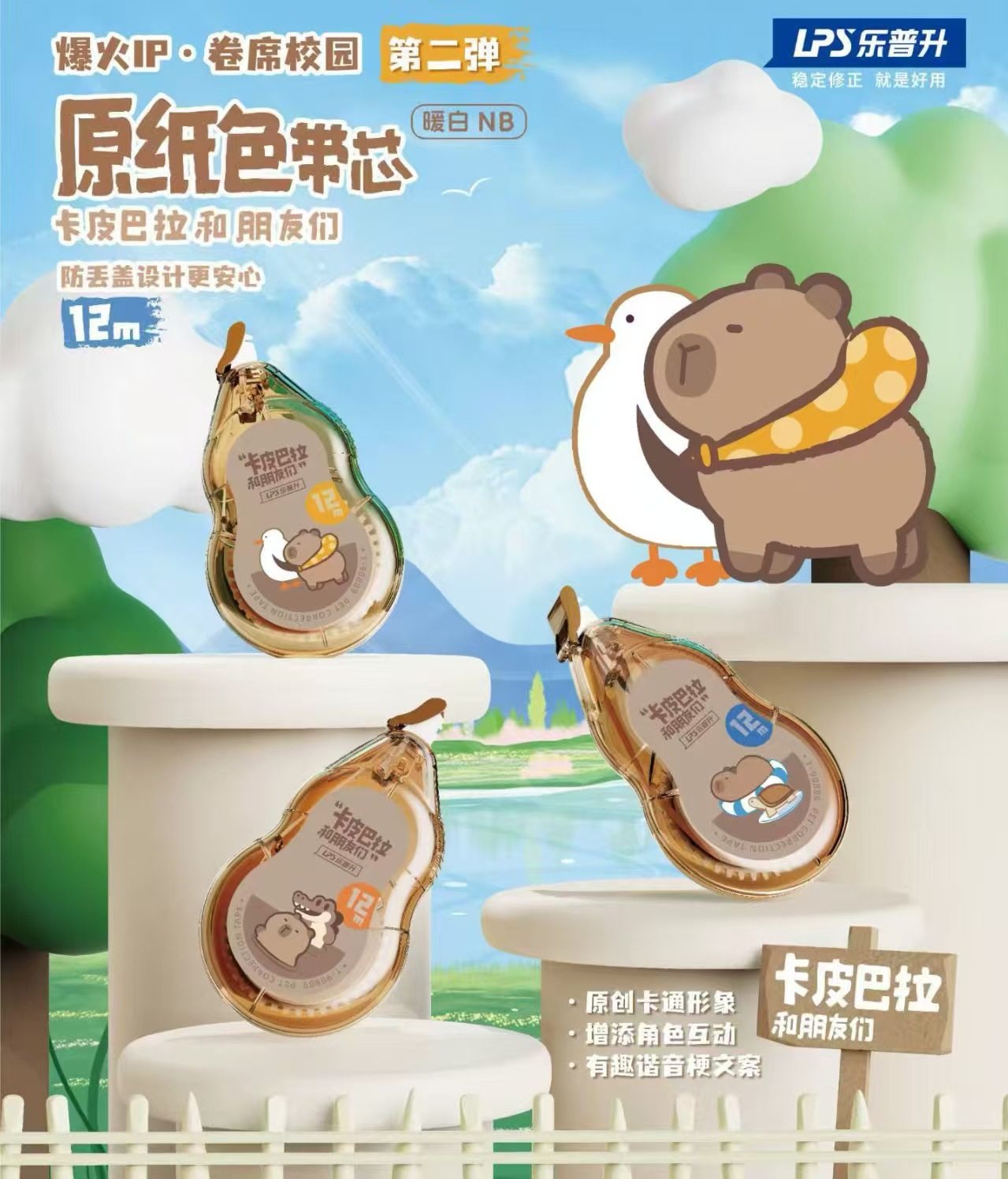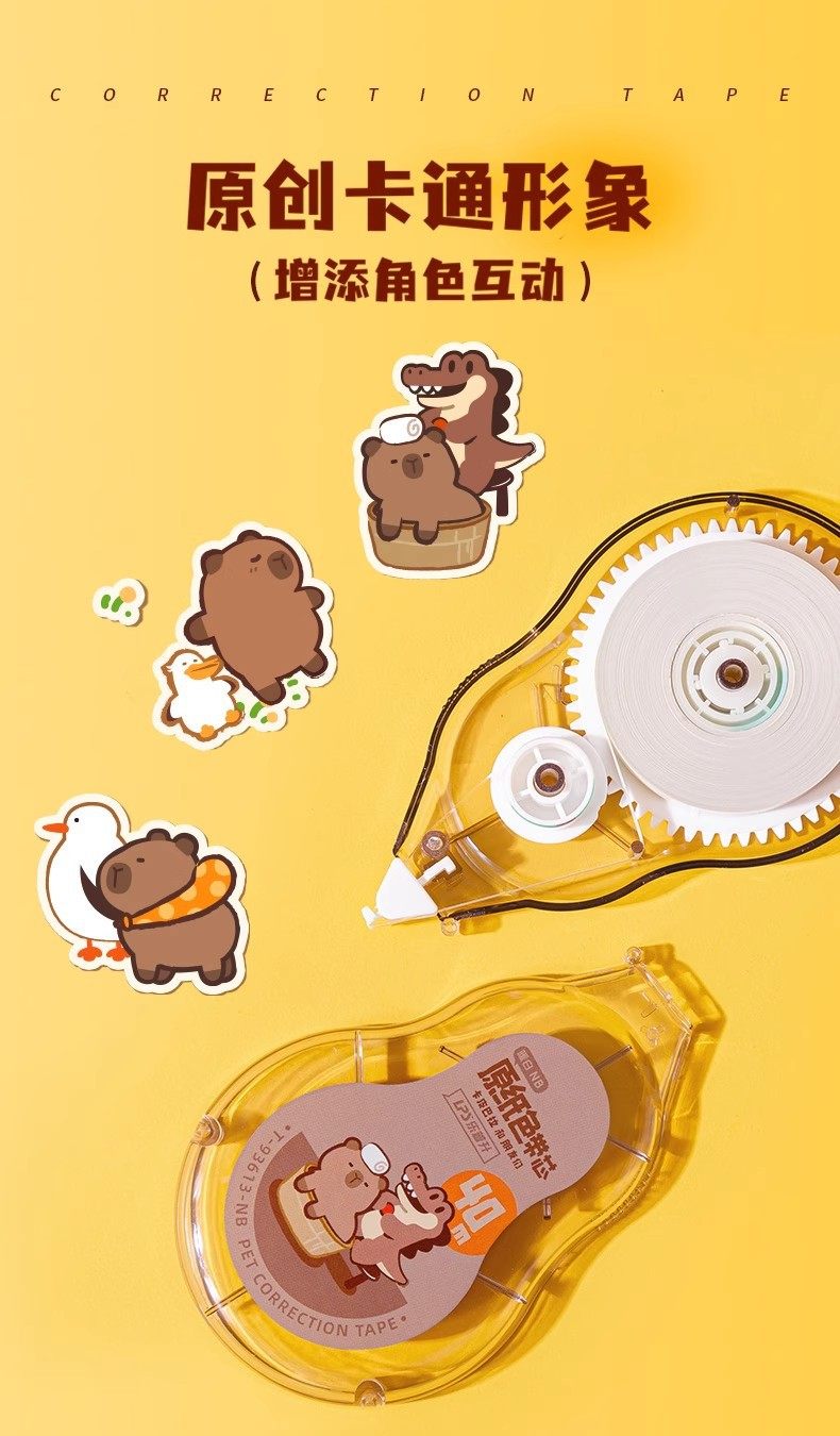 Lepusheng's Second Kapibala Correction Belt Student Cartoon Large-Capacity Original Paper Color Invisible Traceless Correction Belt