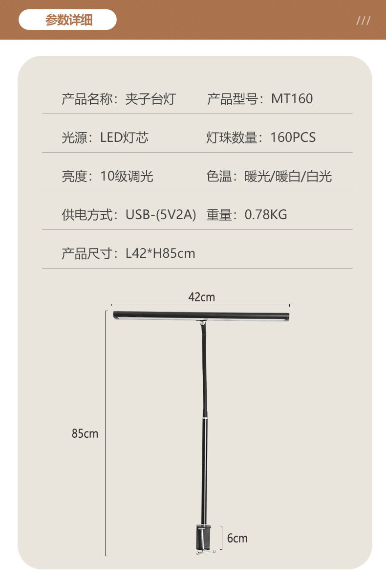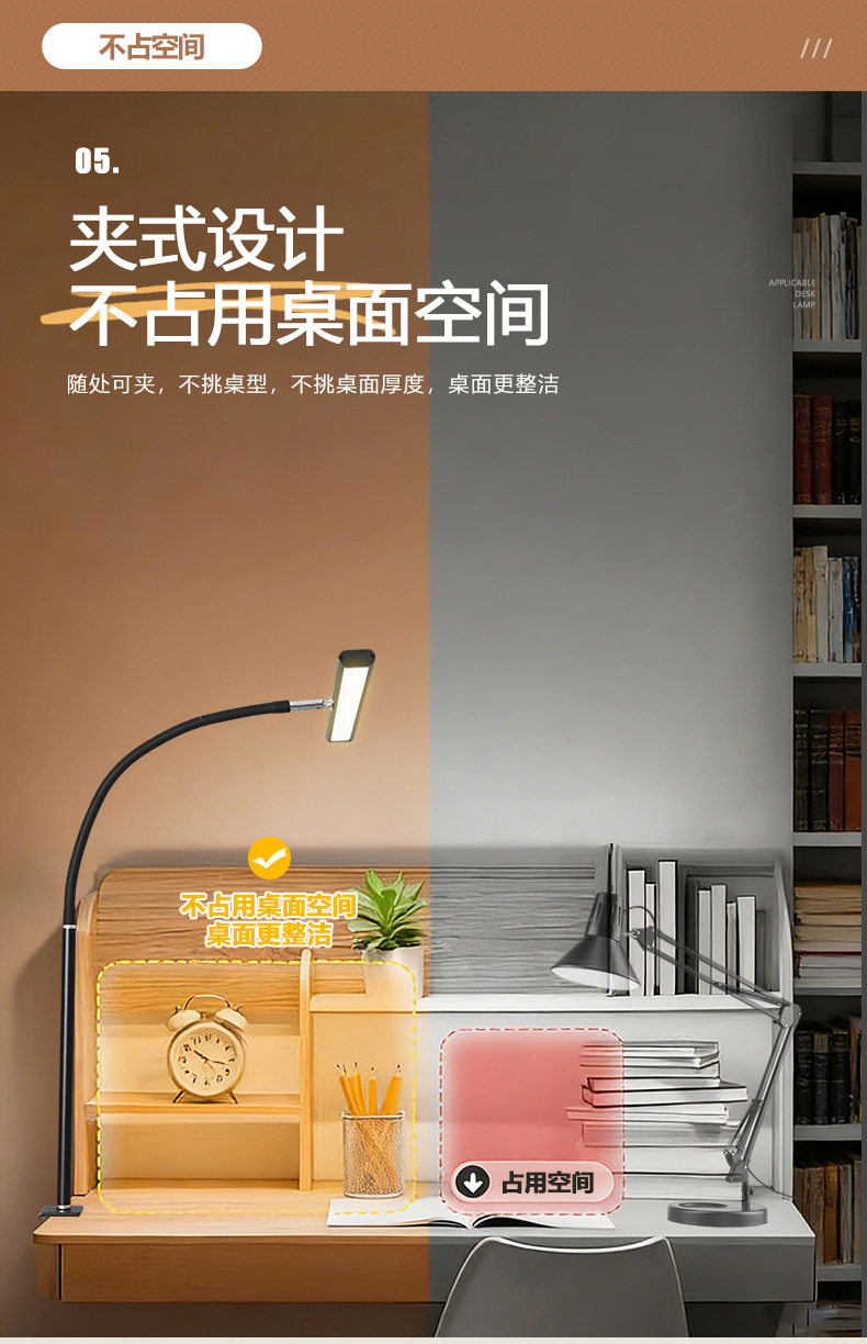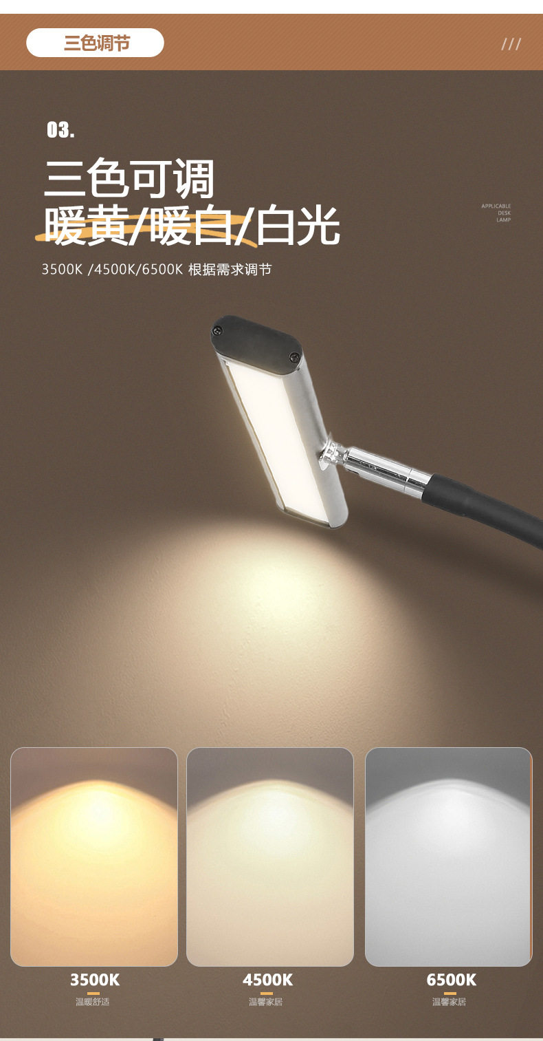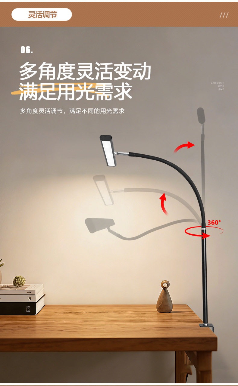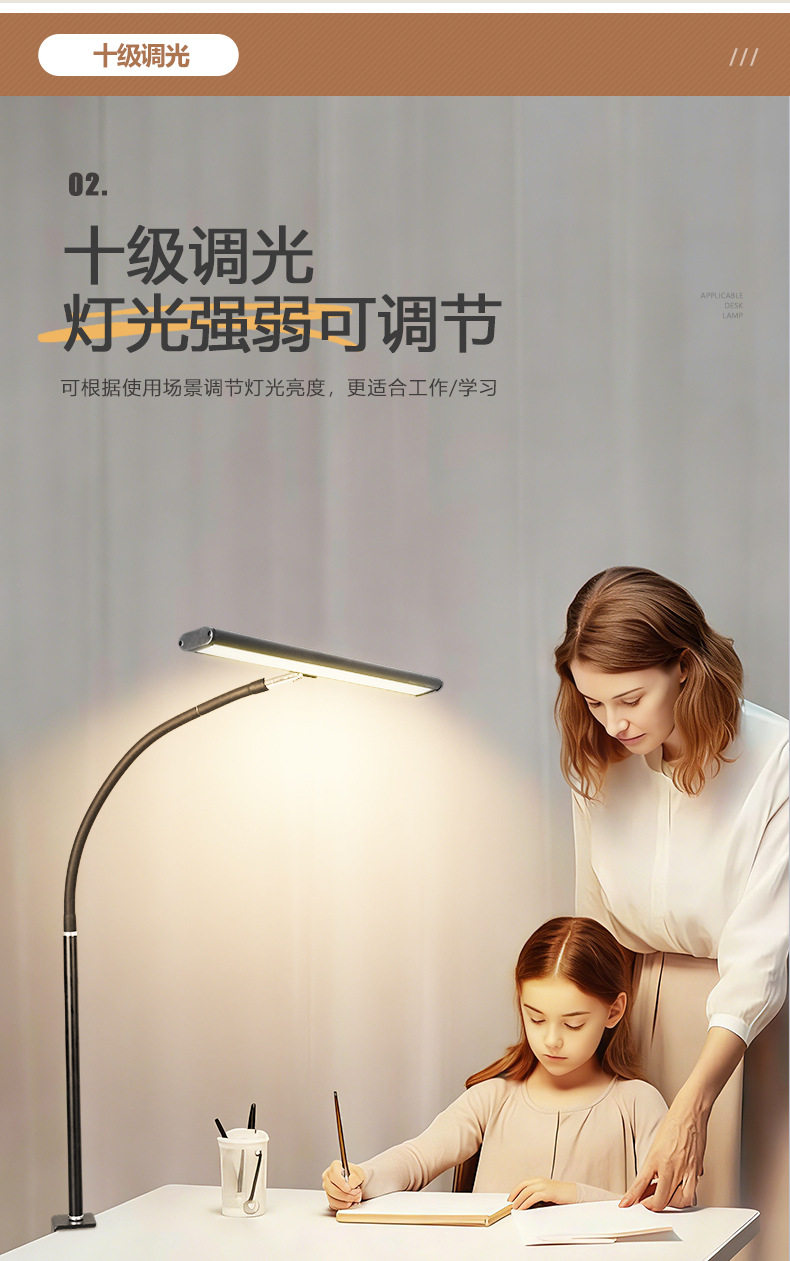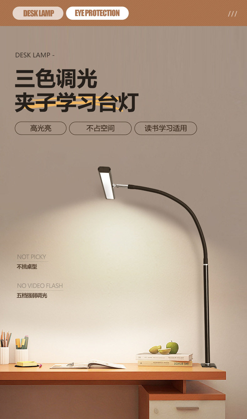 Cross-Border Eye Protection Desk Lamp Gooseneck Clip Lamp Led Desk Lamp Study Work Lamp Computer Lighting Desktop Lamp