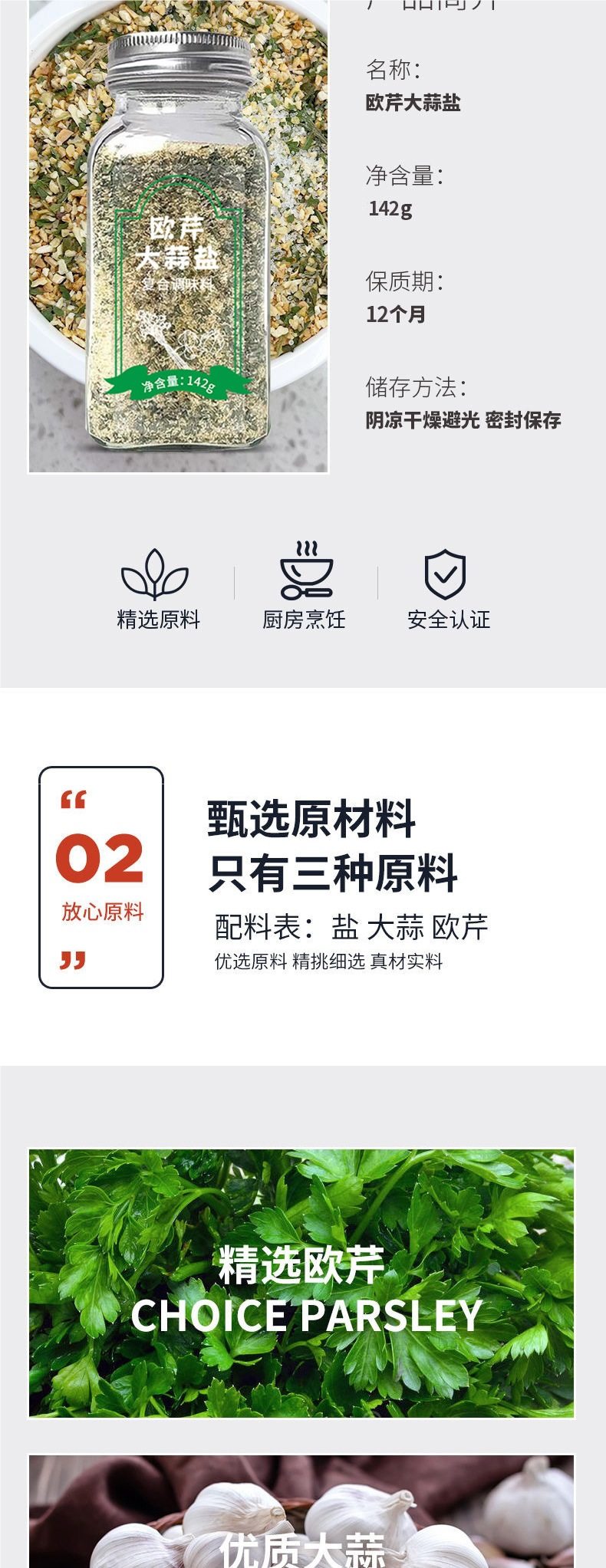 | Specifications | Parsley garlic salt 142gx1 bottle,Parsley garlic salt 142gx2 bottles,Parsley garlic salt 142gx3 bottles,Parsley garlic salt 142gx4 bottles,Parsley garlic salt 142gx5 bottles,Parsley garlic salt 142gx6 bottles |