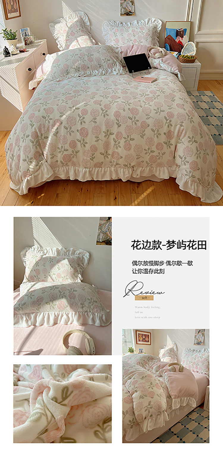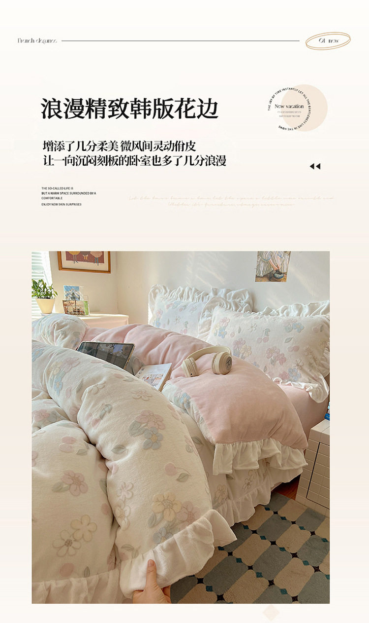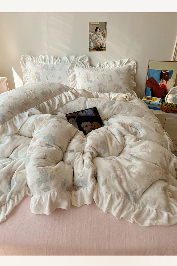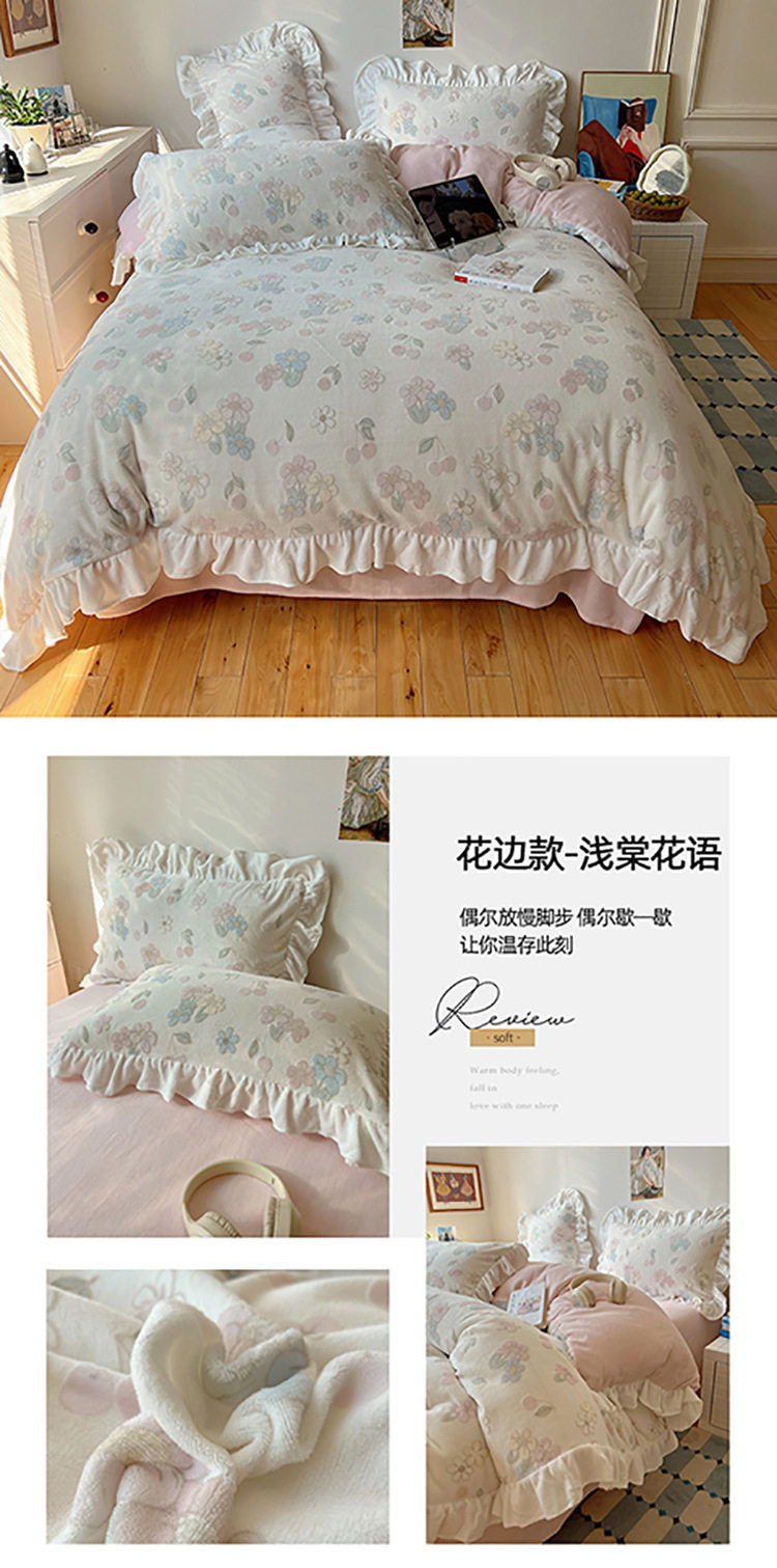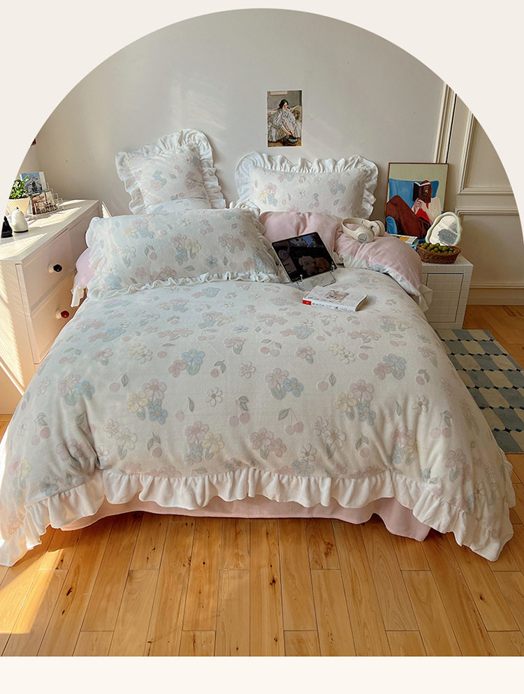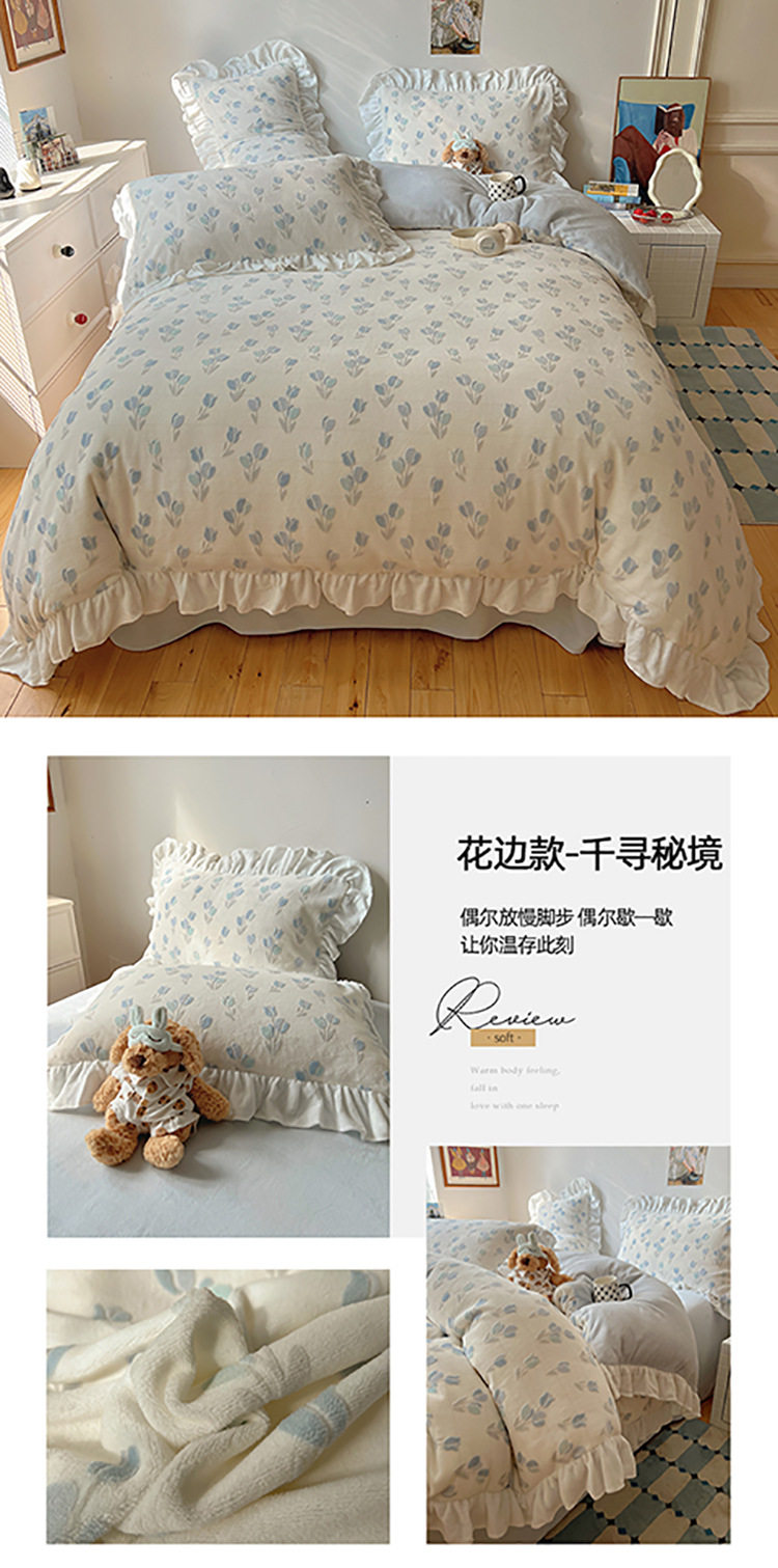Class a Ins Lace Milk Velvet Winter Bed Plush Four-Piece Set Coral Velvet Stereo Carved Flannel Three-Piece Set