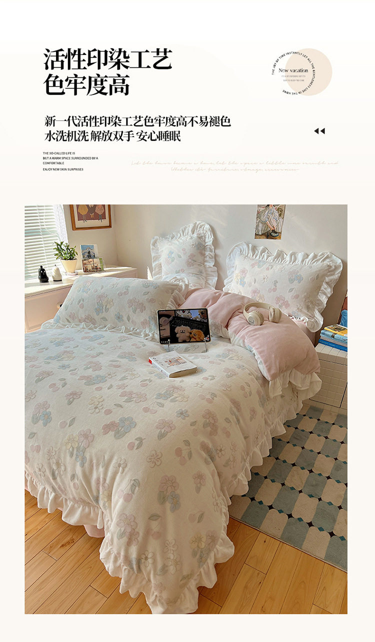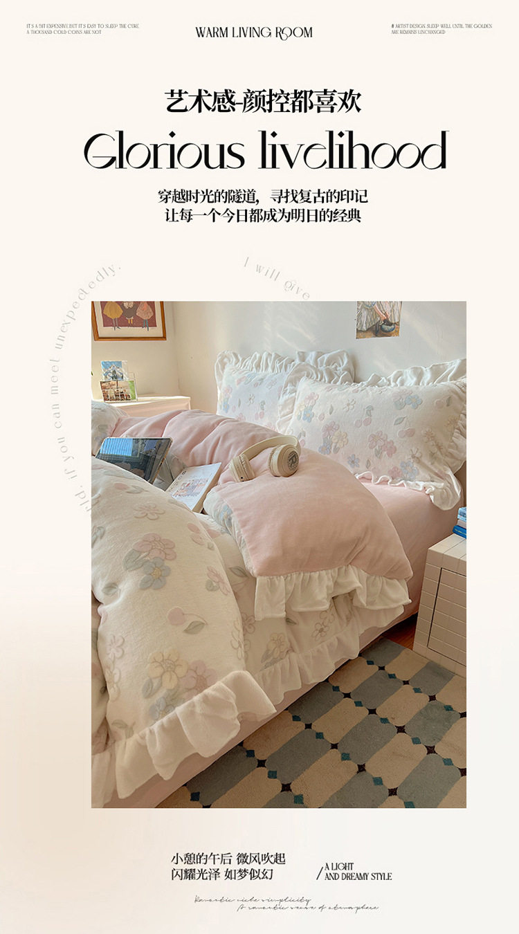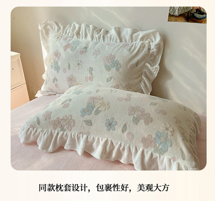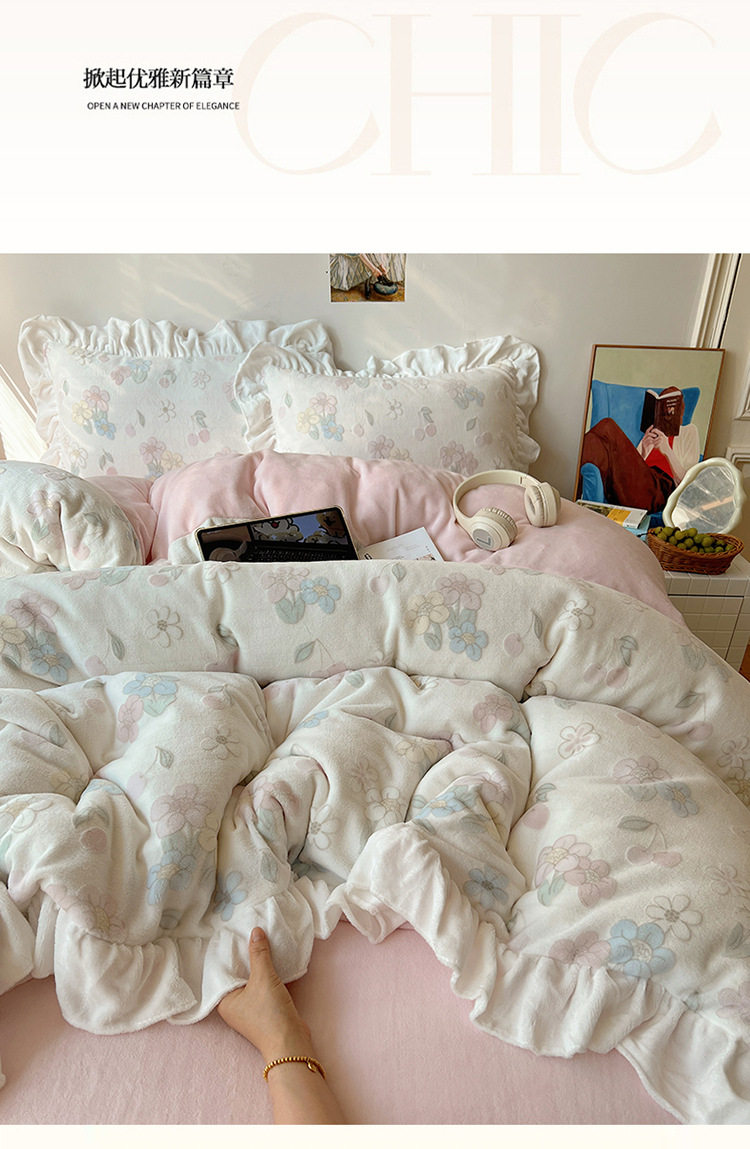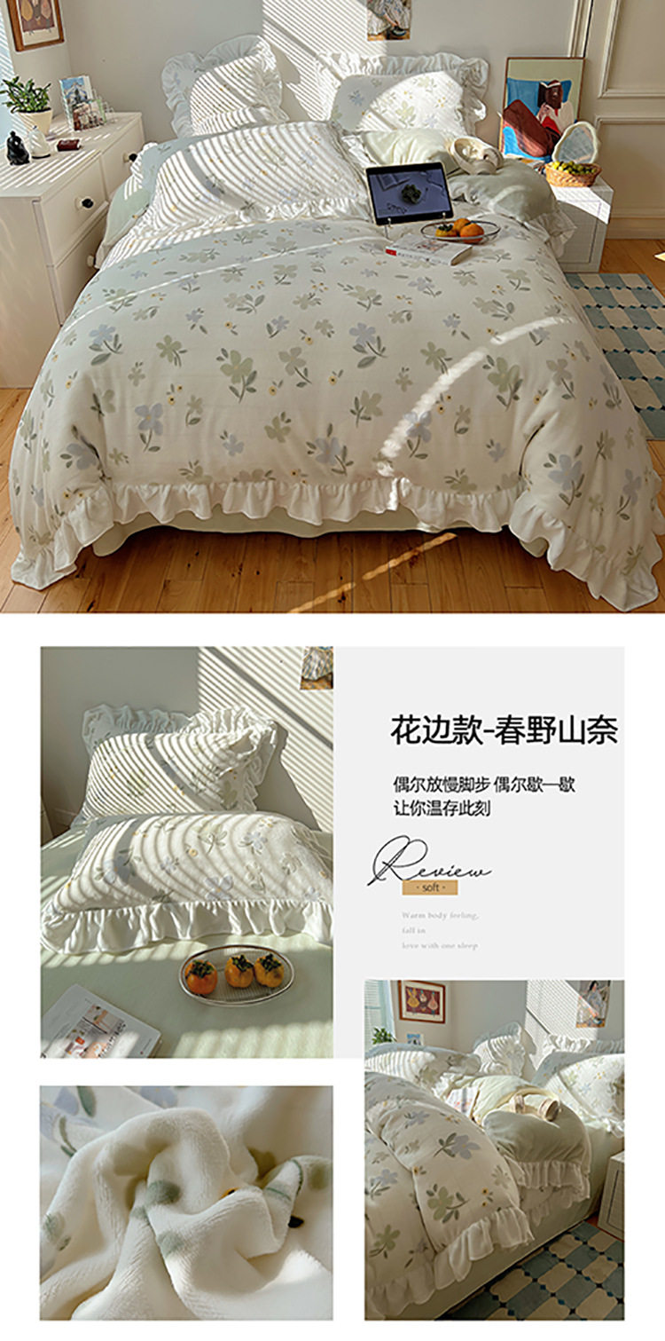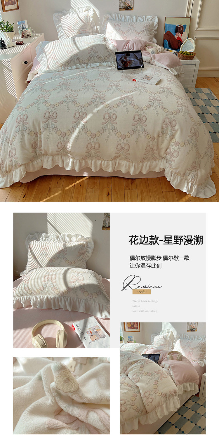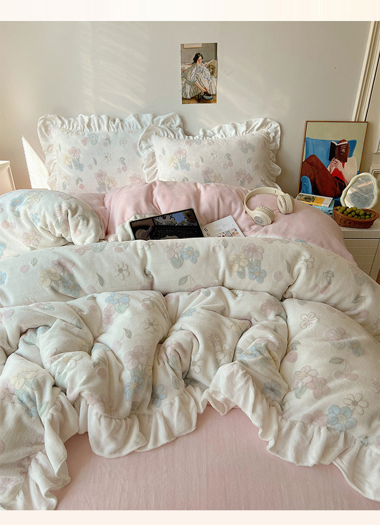 Class a Ins Lace Milk Velvet Winter Bed Plush Four-Piece Set Coral Velvet Stereo Carved Flannel Three-Piece Set