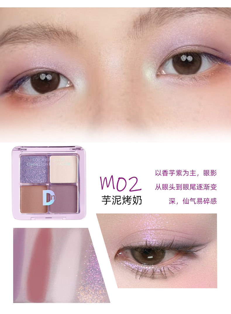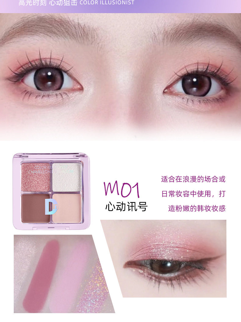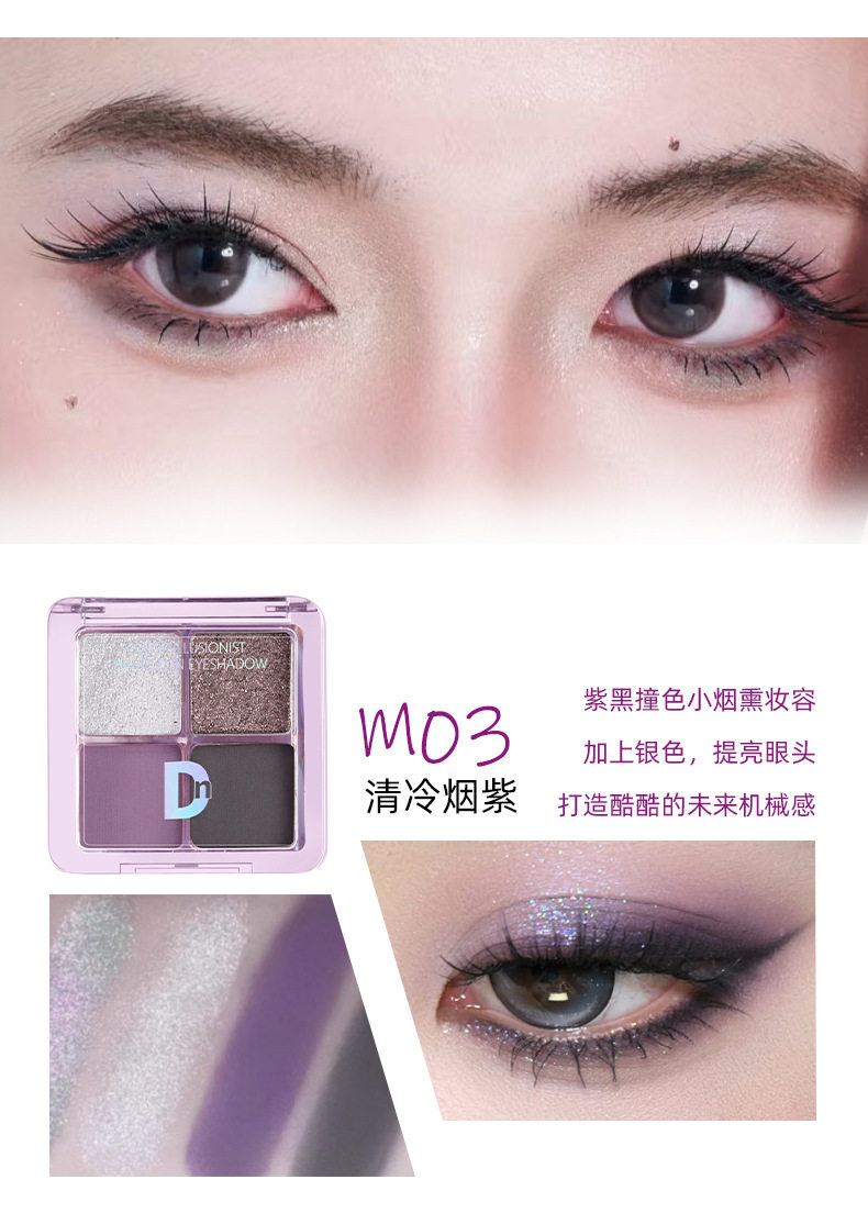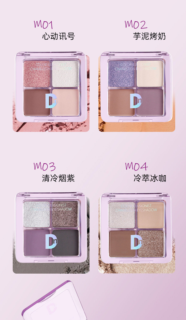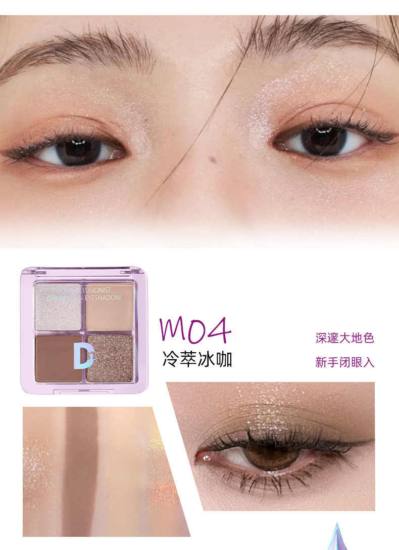 Dn Four-Color Eye Shadow Palette Matte Pearlescent Earth Color Small Palette Portable Daily Work Clothing Easy to Use Waterproof Sweat-Free Powder