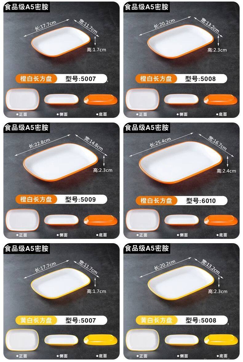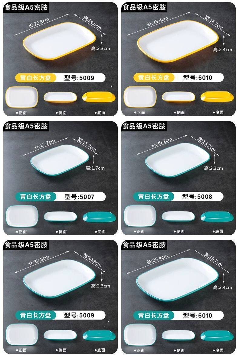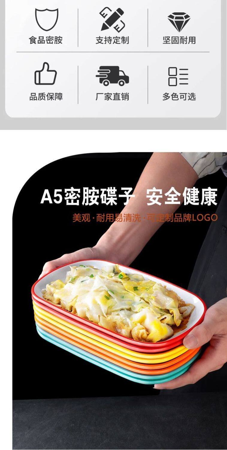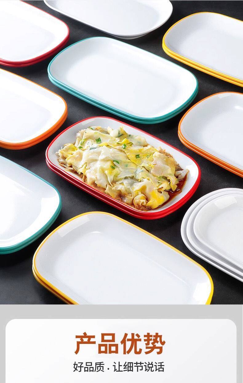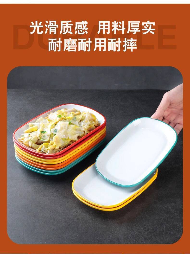 Two-Color Oval Plate Rectangular Snack Plate Hot Pot Side Dish Barbecue Plate Commercial Melamine Rice Roll Plate Barbecue Plate