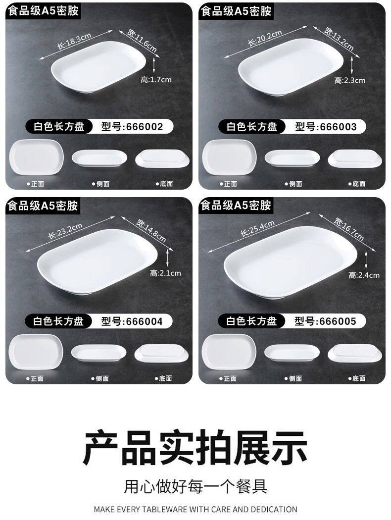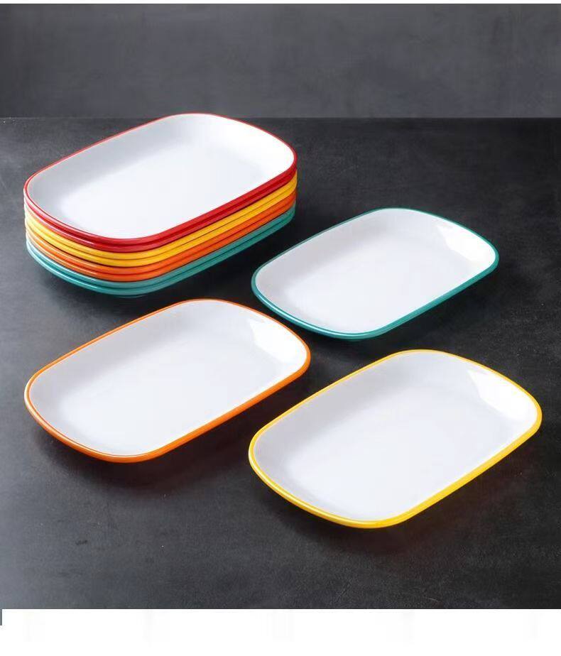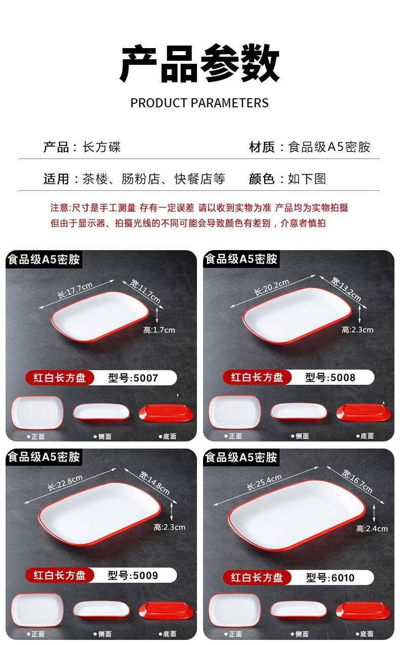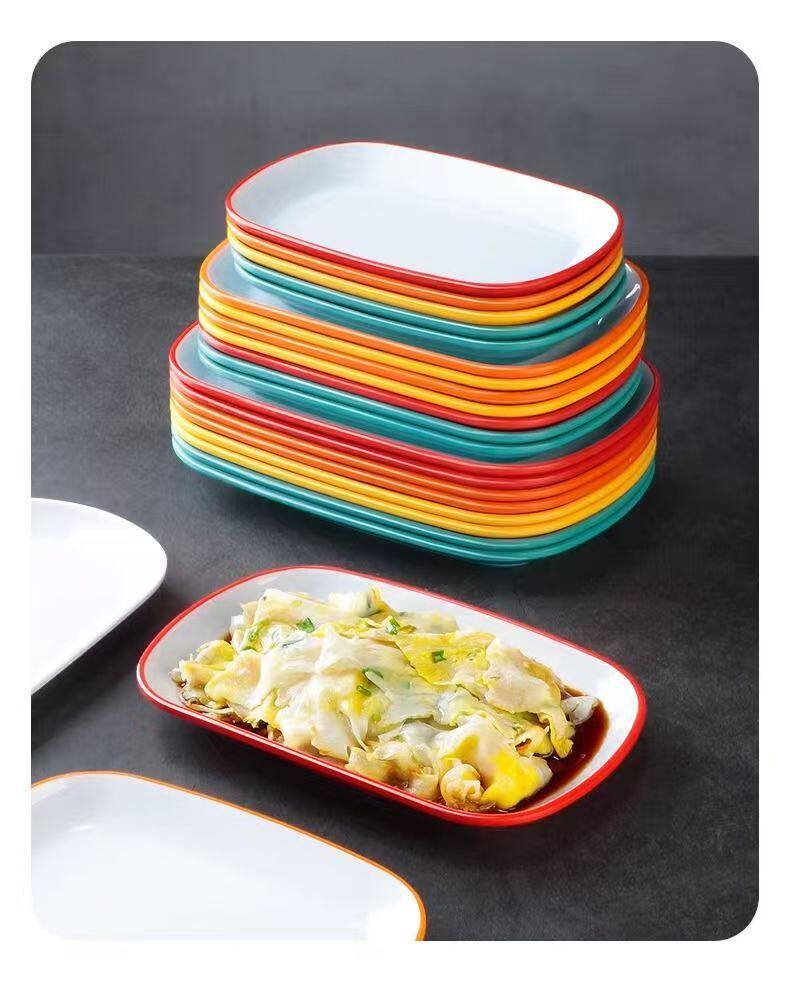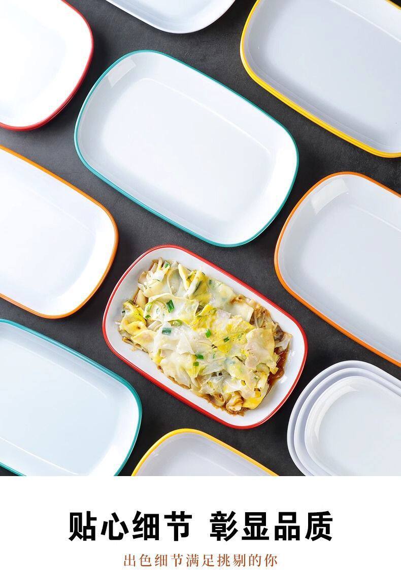 Two-Color Oval Plate Rectangular Snack Plate Hot Pot Side Dish Barbecue Plate Commercial Melamine Rice Roll Plate Barbecue Plate