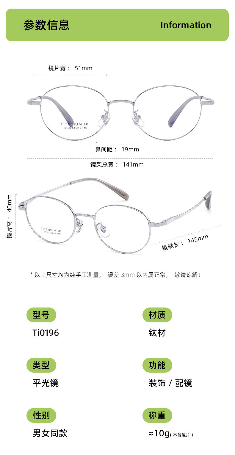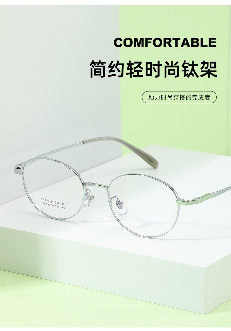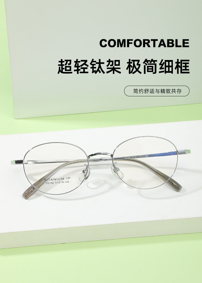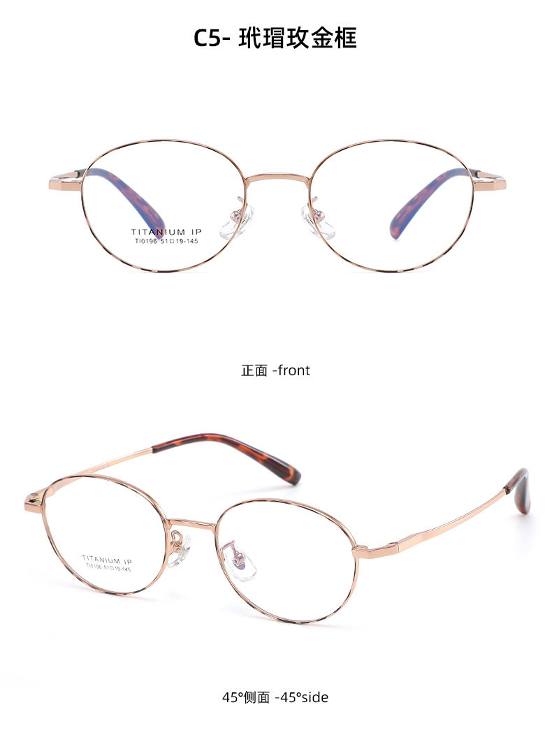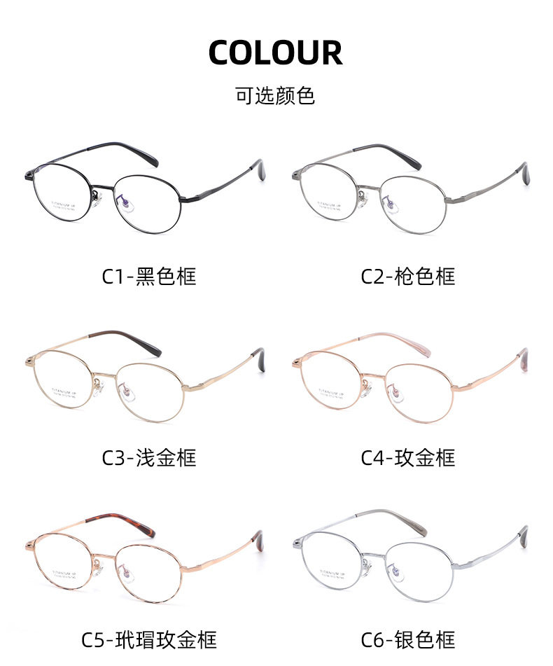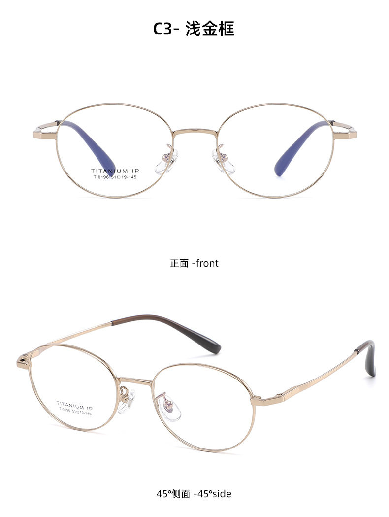 Ultra-Light Oval Frame Titanium Nerd Glasses Anti-Blue Light Eyeglass Frame Can Be Fitted with Prescription Gold Wire Plain Glasses Ti0196