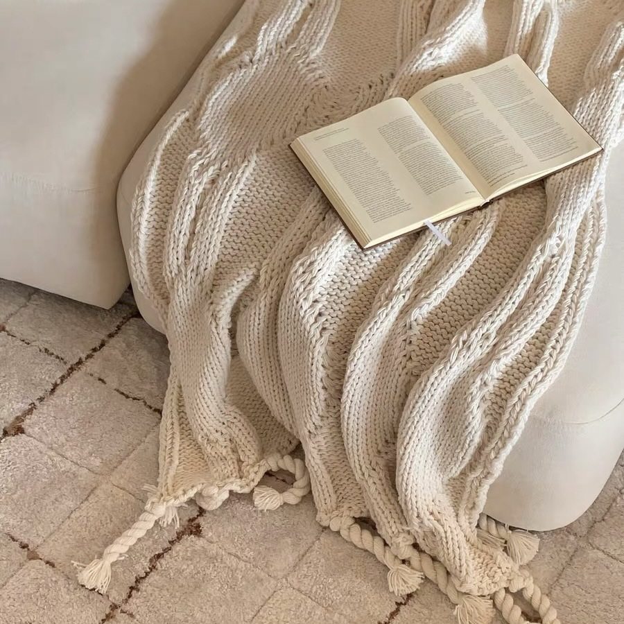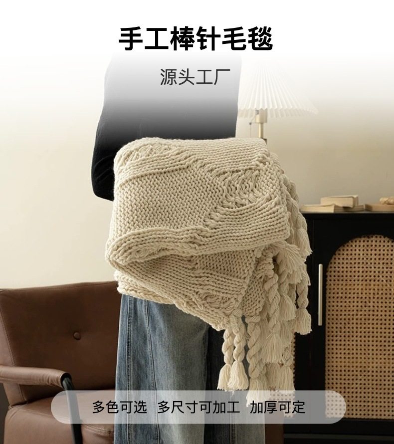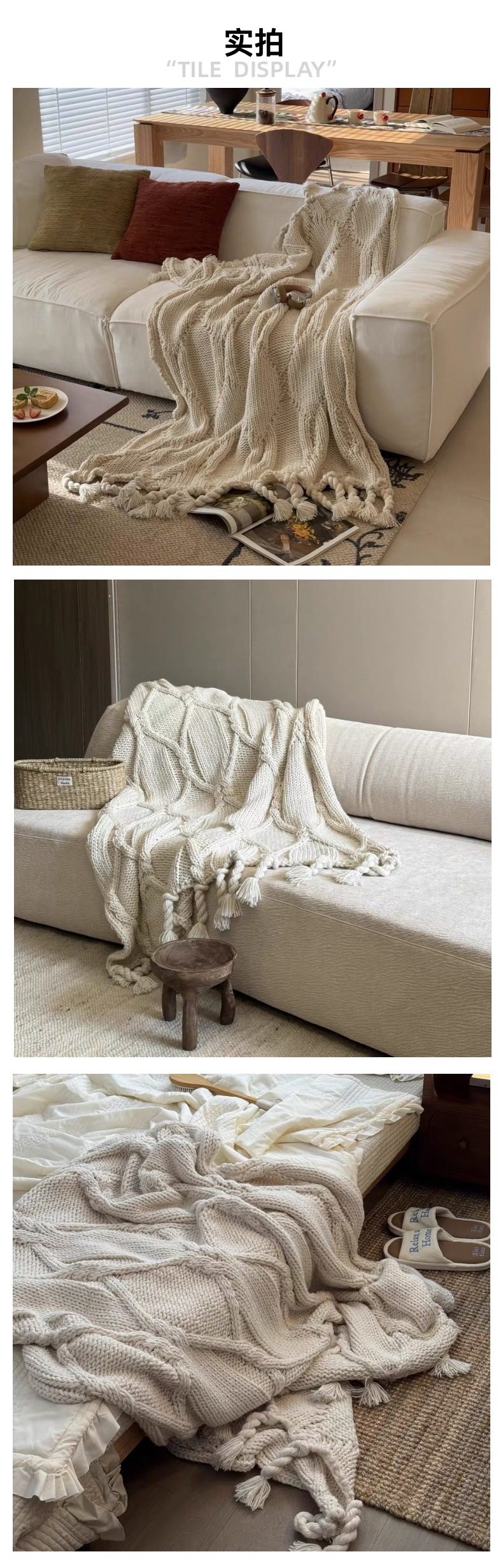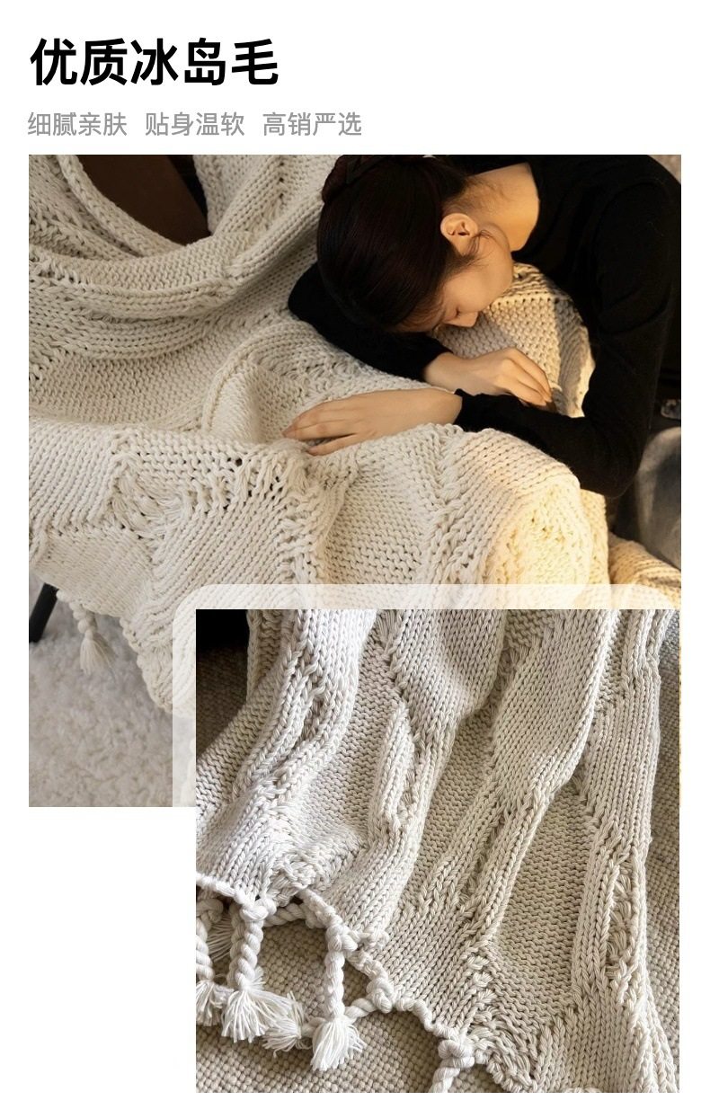 Niche Hand-Knitted Thick Woolen Thread Nordic Tassel Ins Blanket Bedroom Blanket Sofa Blanket