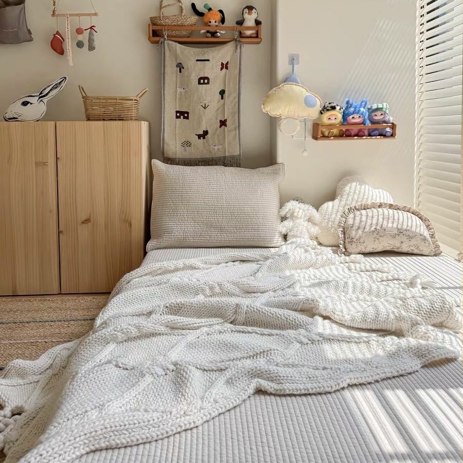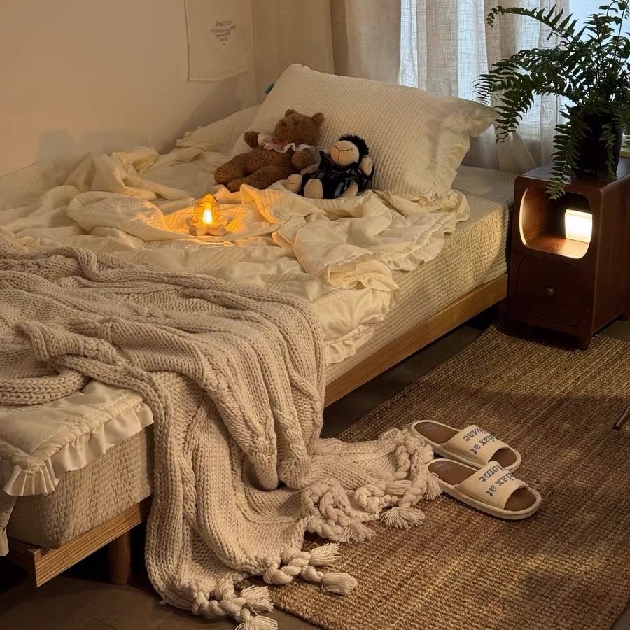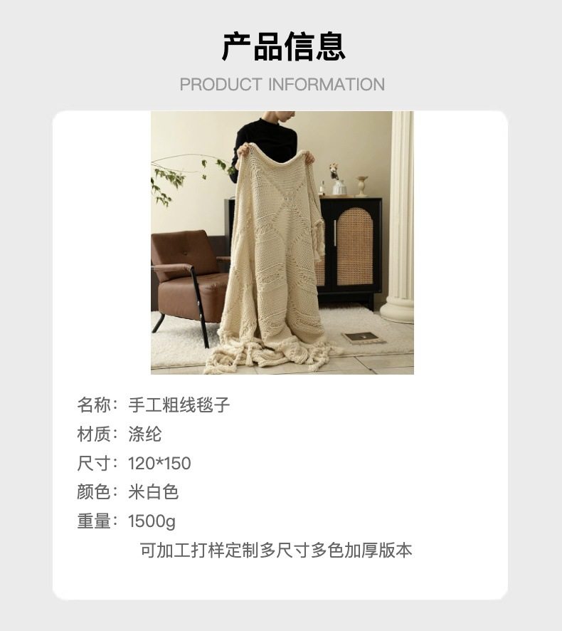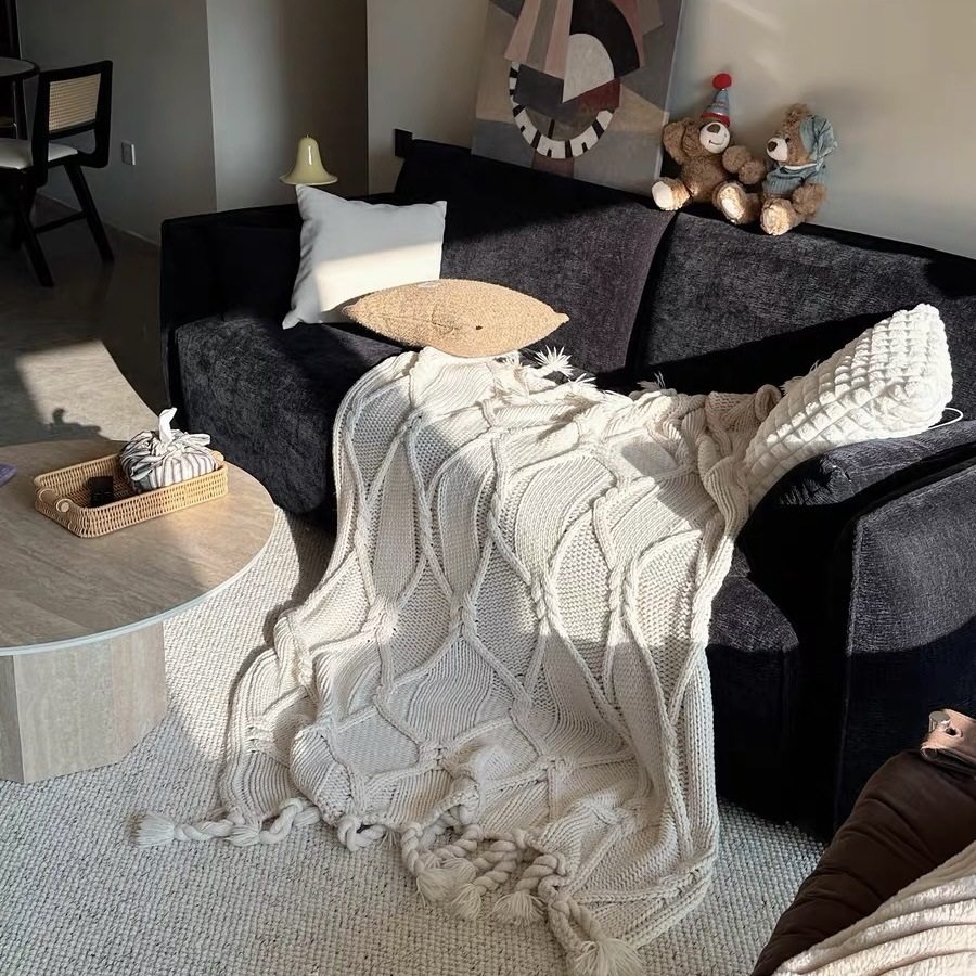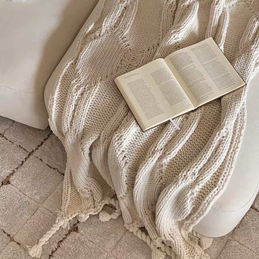 Niche Hand-Knitted Thick Woolen Thread Nordic Tassel Ins Blanket Bedroom Blanket Sofa Blanket