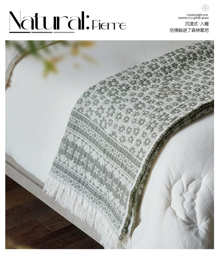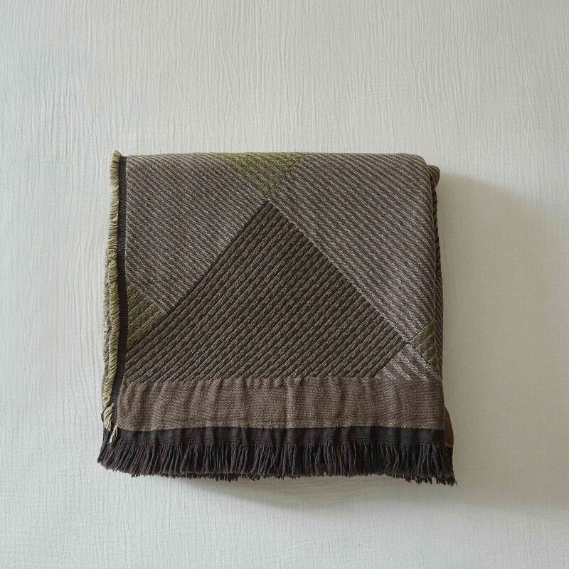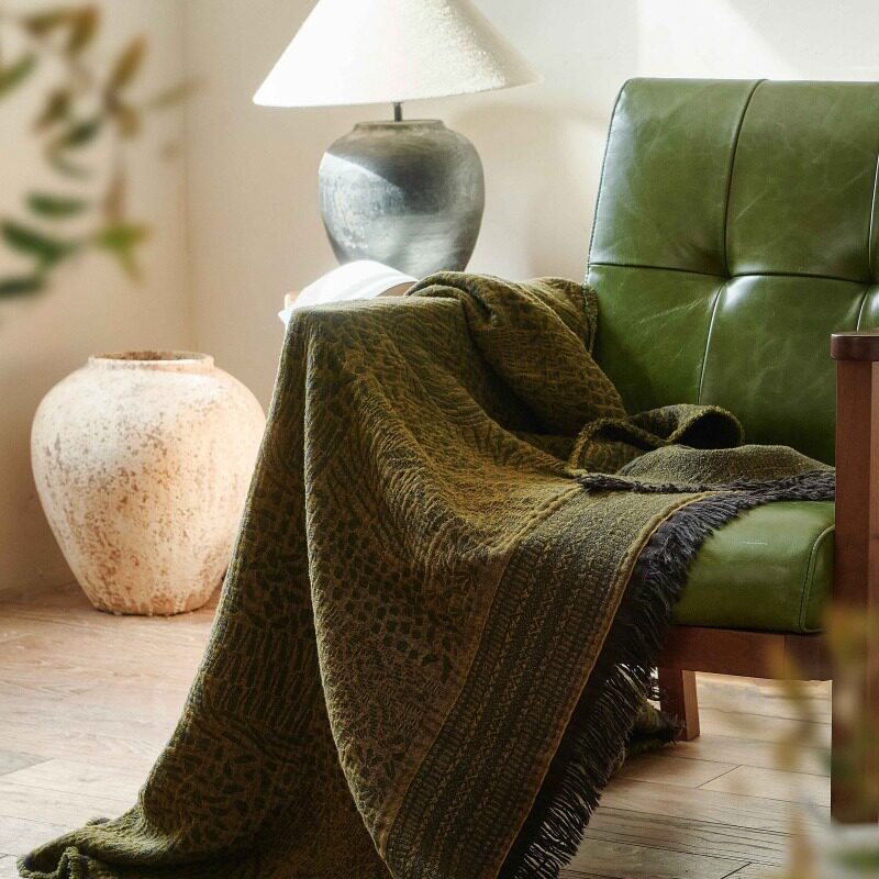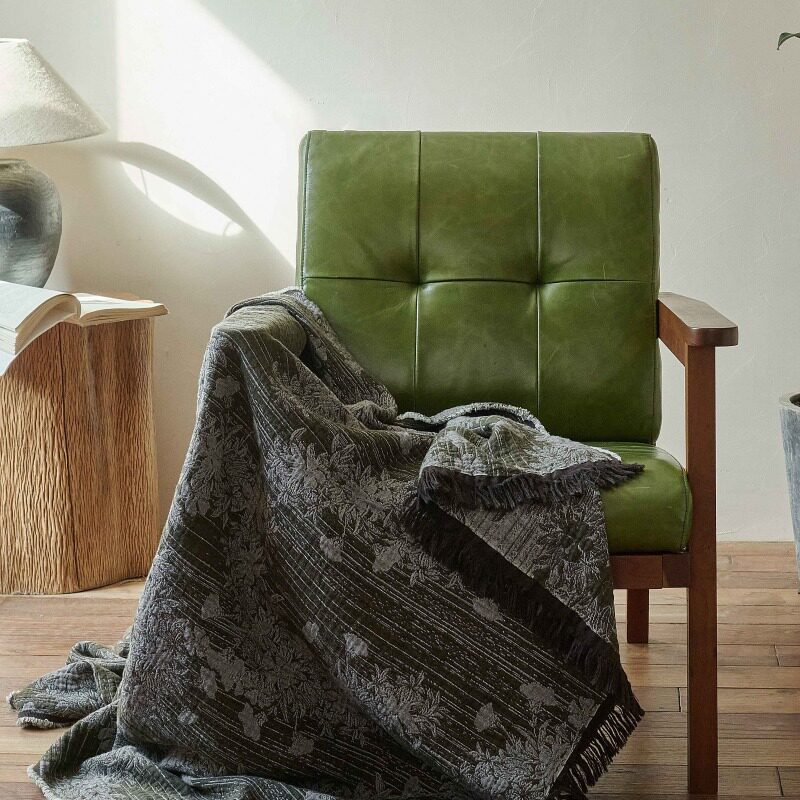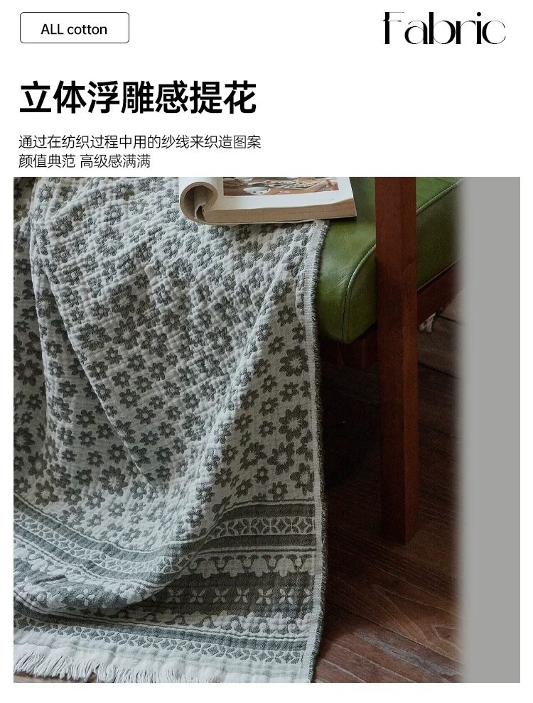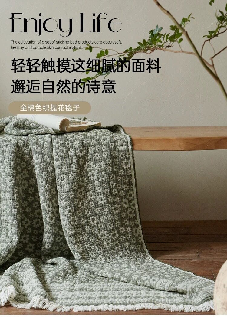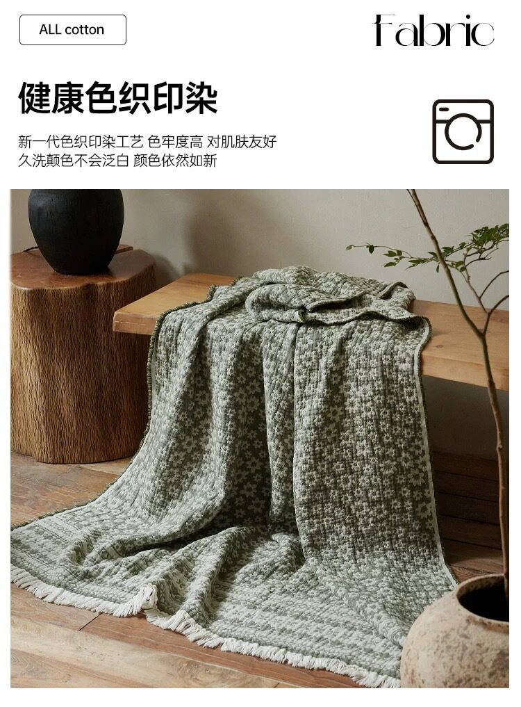 Cotton Yarn-Dyed Jacquard Blanket Retro Office Living Room Bedroom Blanket Machine Washable Multifunctional Cotton Bed Blanket