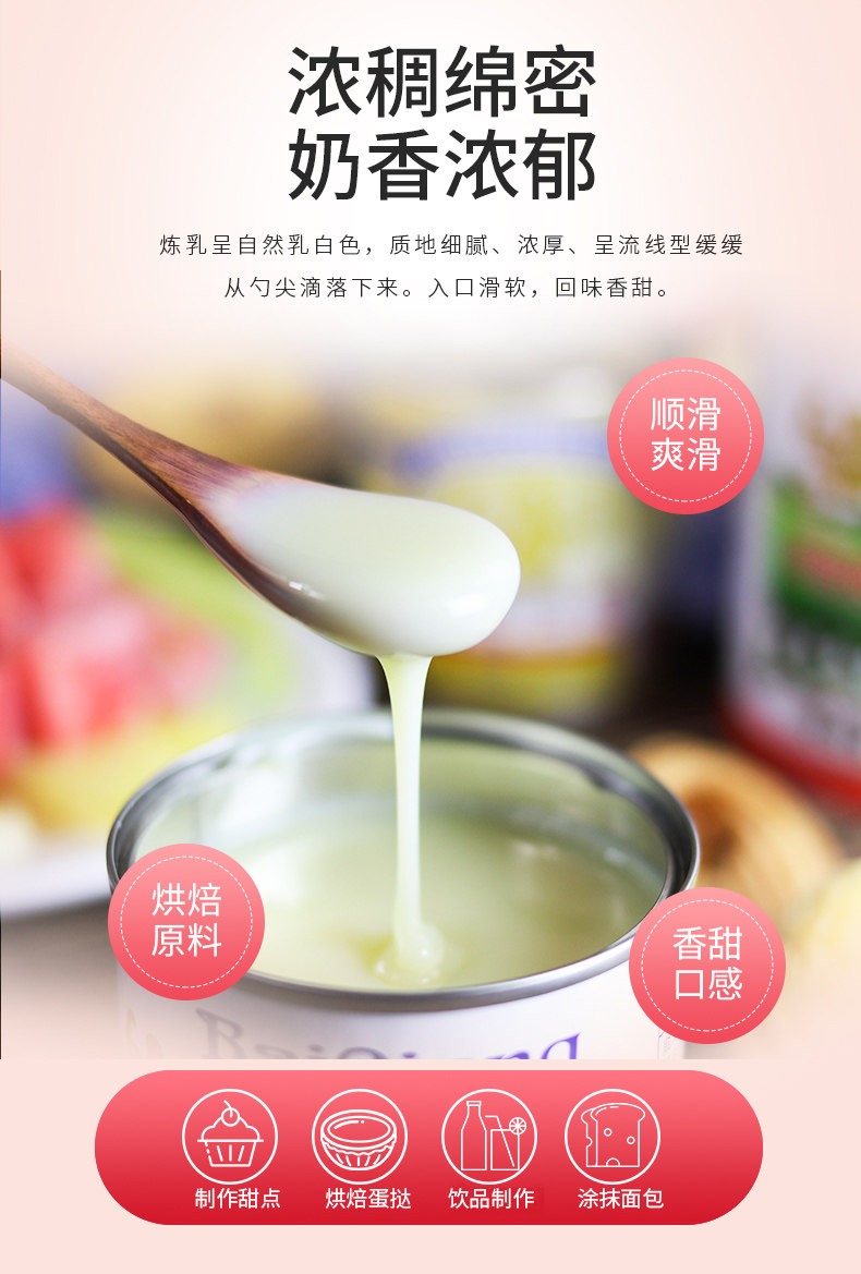 | Packaging specifications | Condensed milk 1000g,Condensed milk 350g,Tubed condensed milk 13g*30 packs,Tubed condensed milk 13g*15 packs |