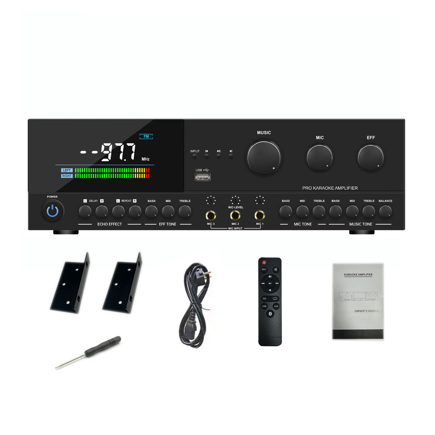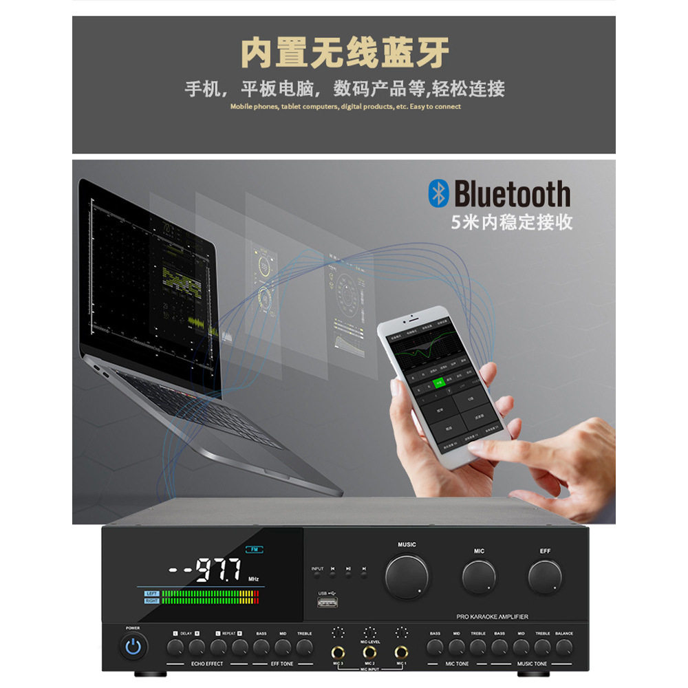 Professional USB Bluetooth Front Audio Amplifier High-Power Karaoke Amplifier Home Anti-Howling Effect Cross-Border