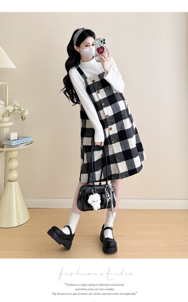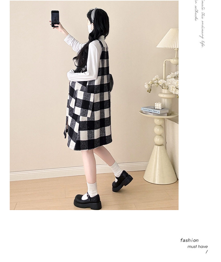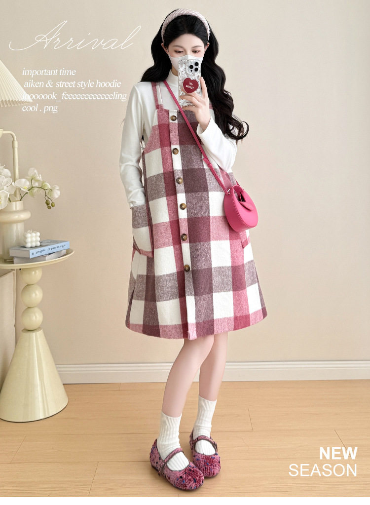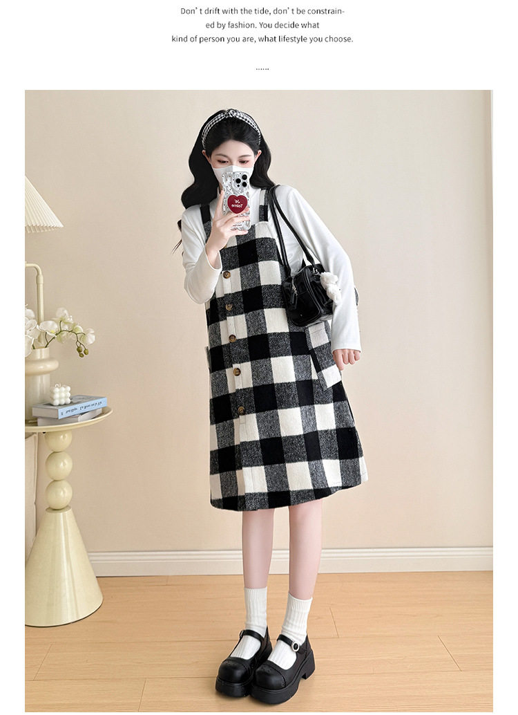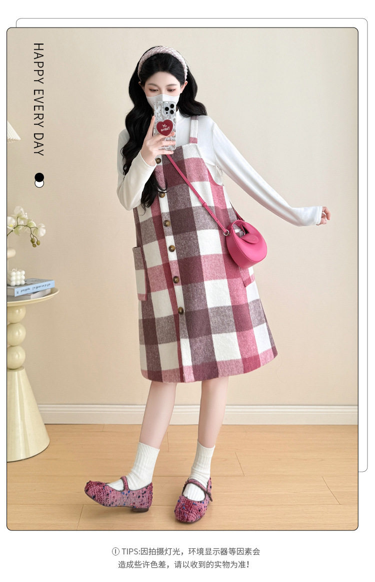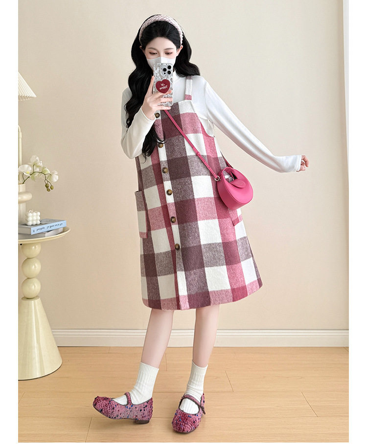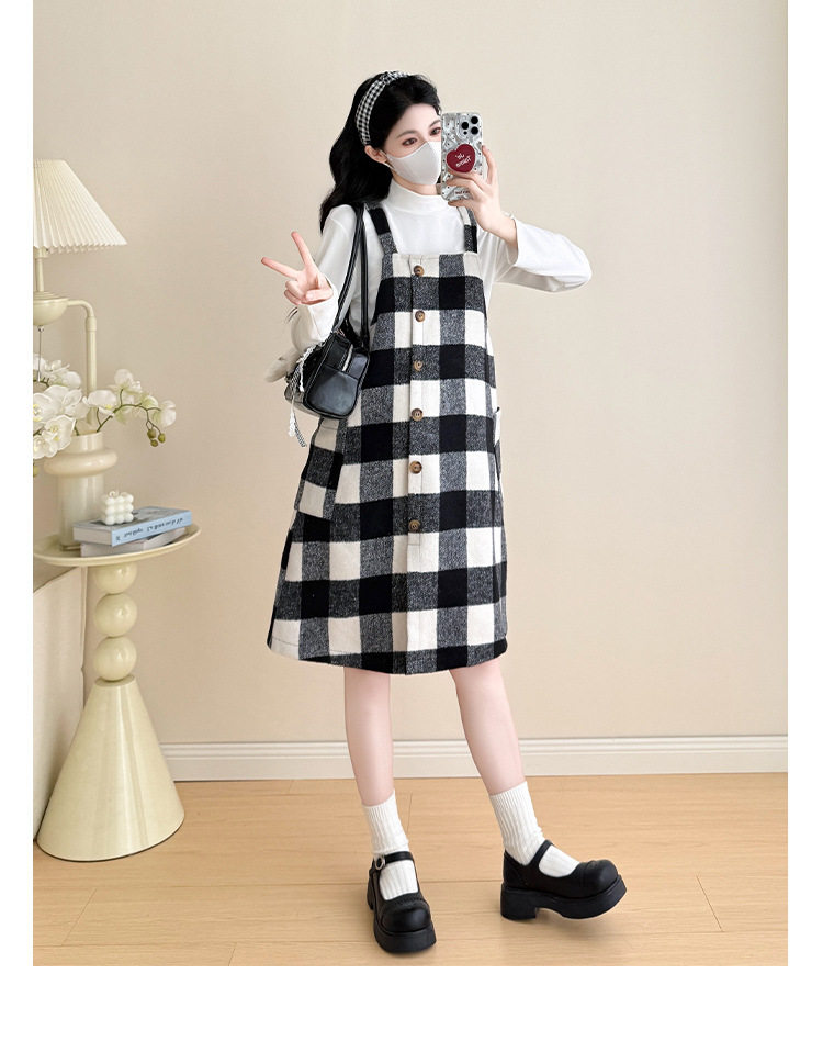 2025 New Autumn and Winter Thickened Comfortable Belly-Covering Suspender Dress, Versatile and Slimming Plaid Maternity Suit Dress for Commuting