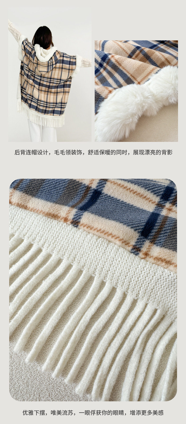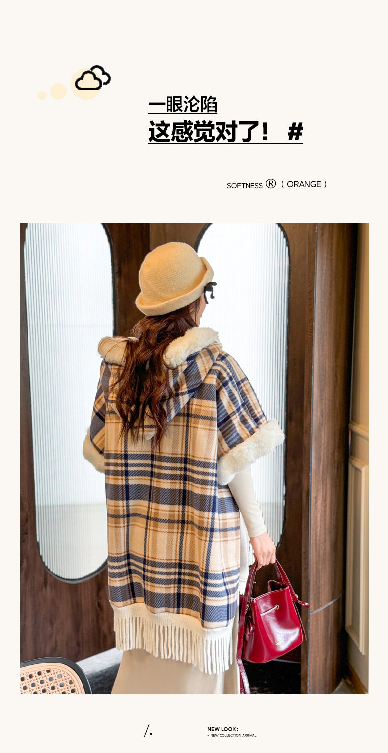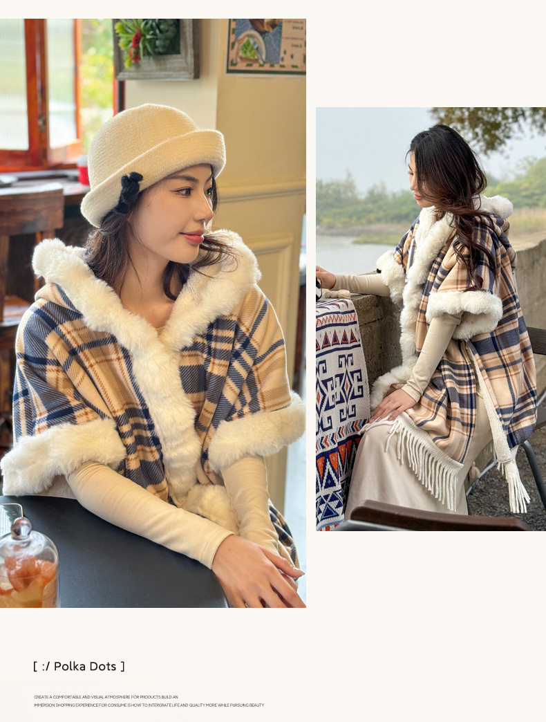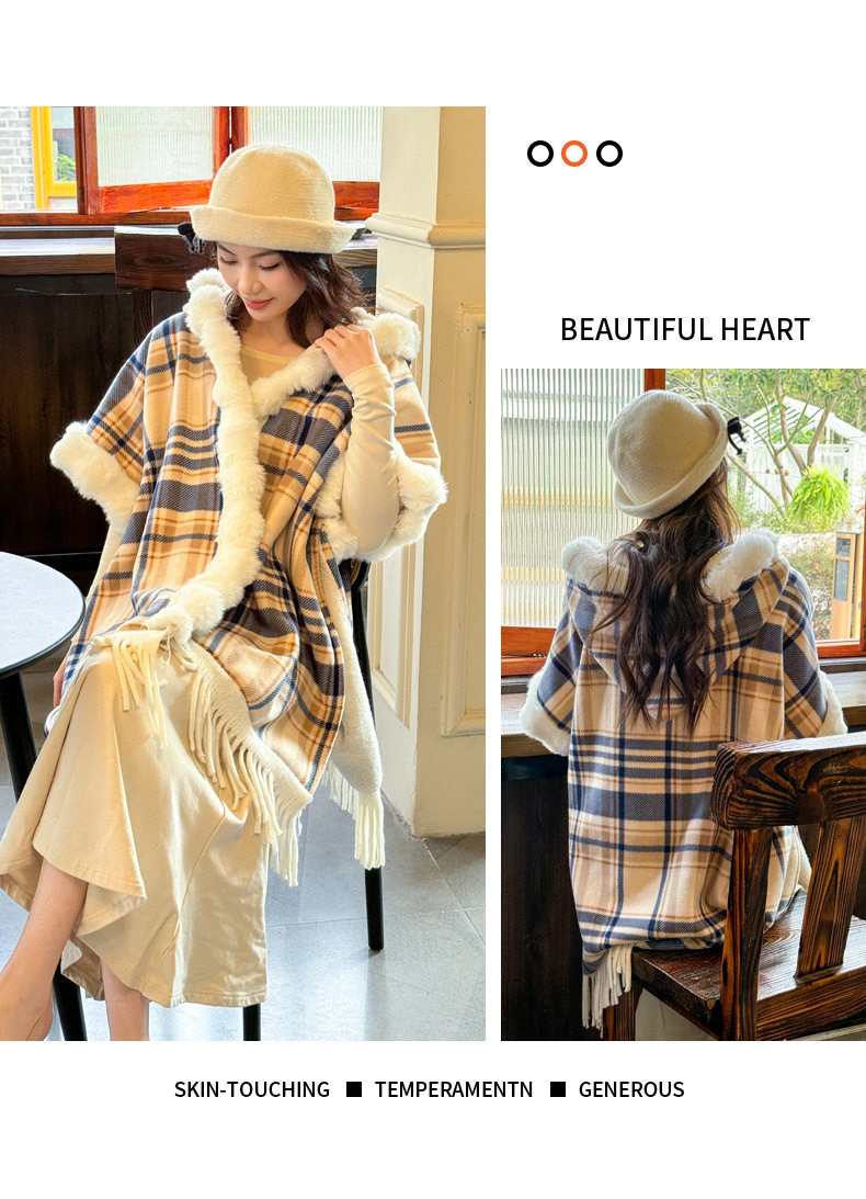 Autumn and Winter Popular Hooded Fur Collar Cape Shawl Blanket Imitation Cashmere Thickeneded Fleece-Lined High-End Autumn and Winter Warm Coat
