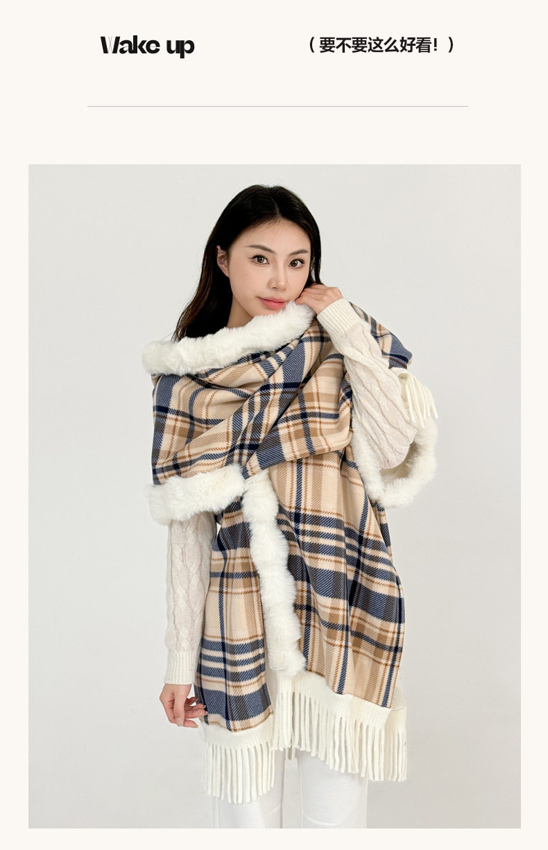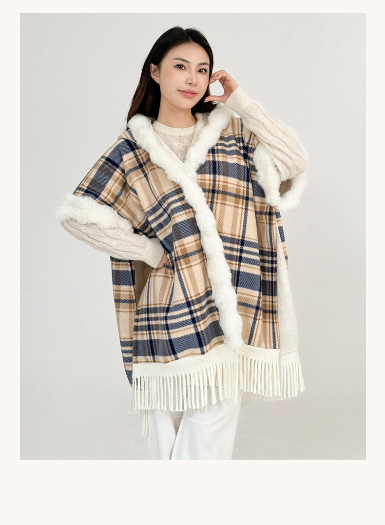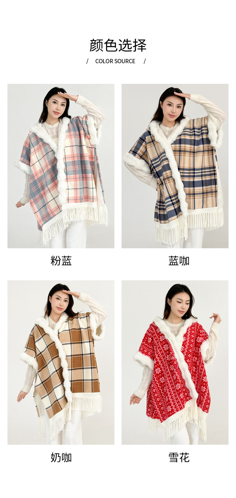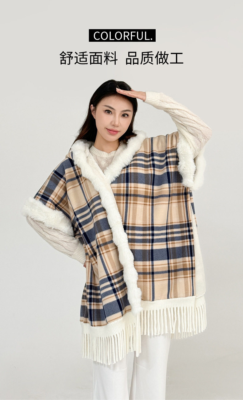 Autumn and Winter Popular Hooded Fur Collar Cape Shawl Blanket Imitation Cashmere Thickeneded Fleece-Lined High-End Autumn and Winter Warm Coat