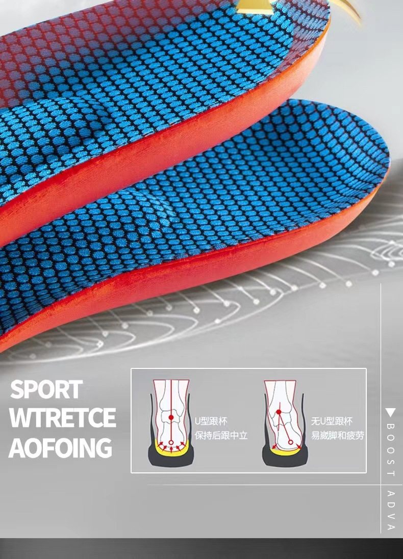 Cross-Border Sports Insoles, Ultra-Soft Soles, Shock-Absorbing, Sweat-Absorbing and Deodorant Insoles, Flat Arch Full-Cushion Heel Pads