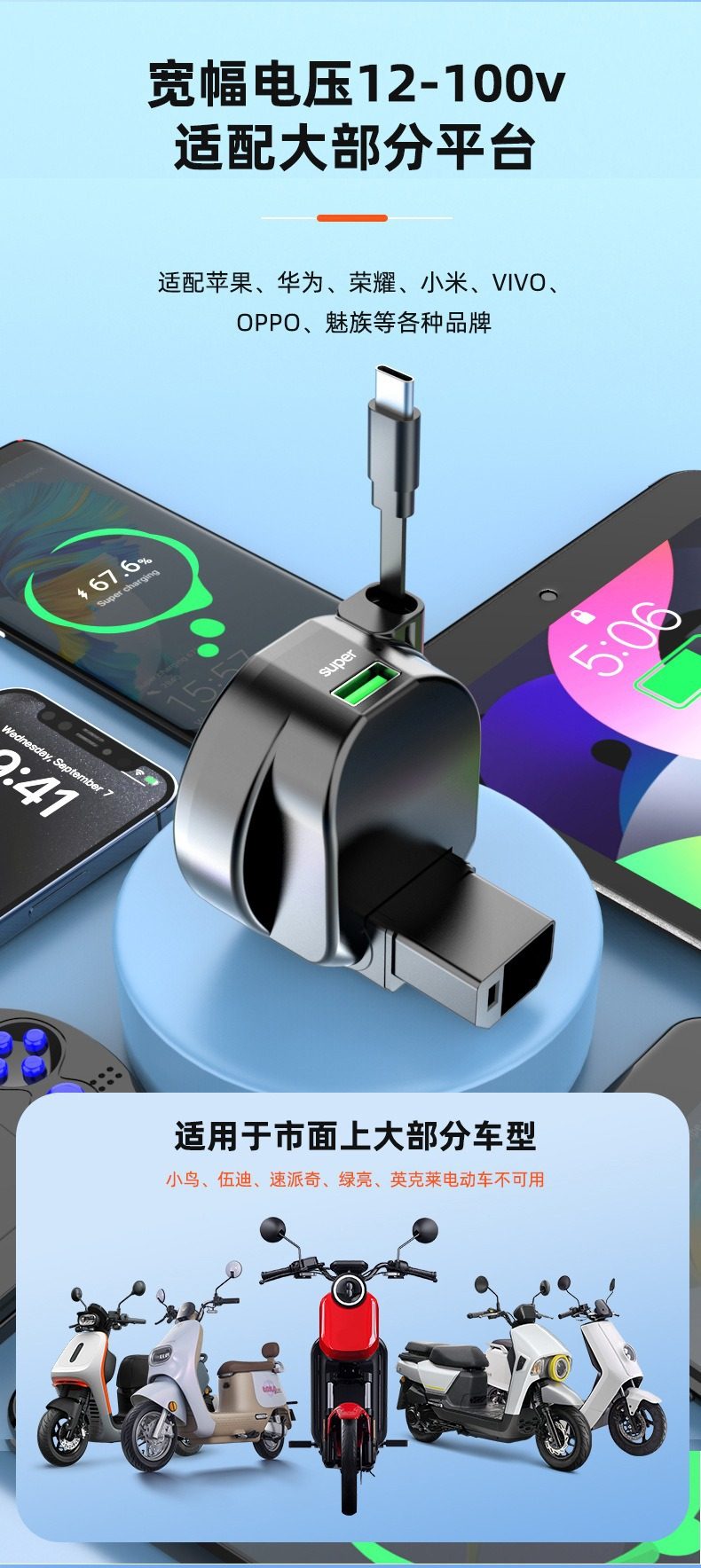 2025 New Car Charger Super Fast Charging Tc Fast Charging Mobile Phone Charger Motorcycle Electric Vehicle New National Standard