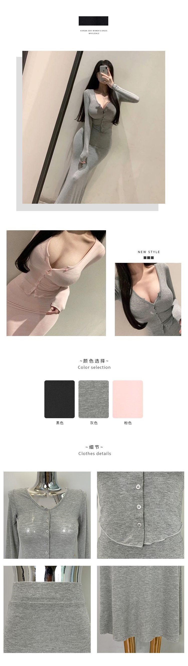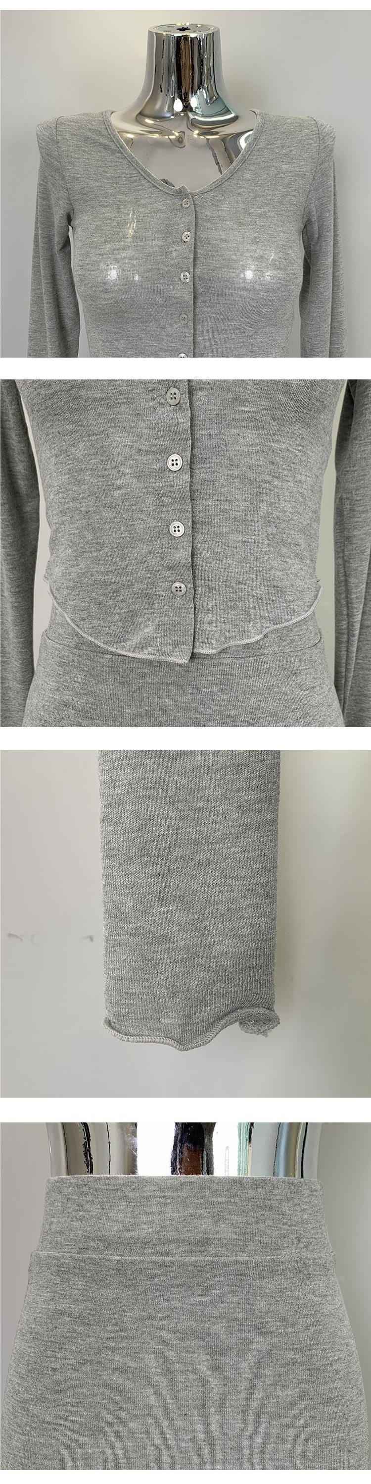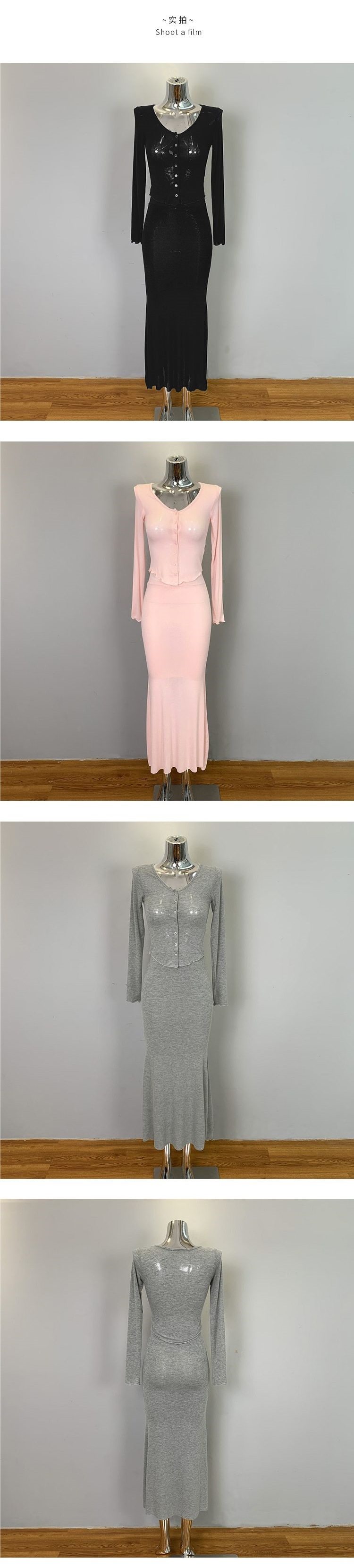 Korean New Slim-Fitting and Figure-Showing Long-Sleeved Cardigan + Lined Fishtail Skirt Two-Piece Wholesale Set