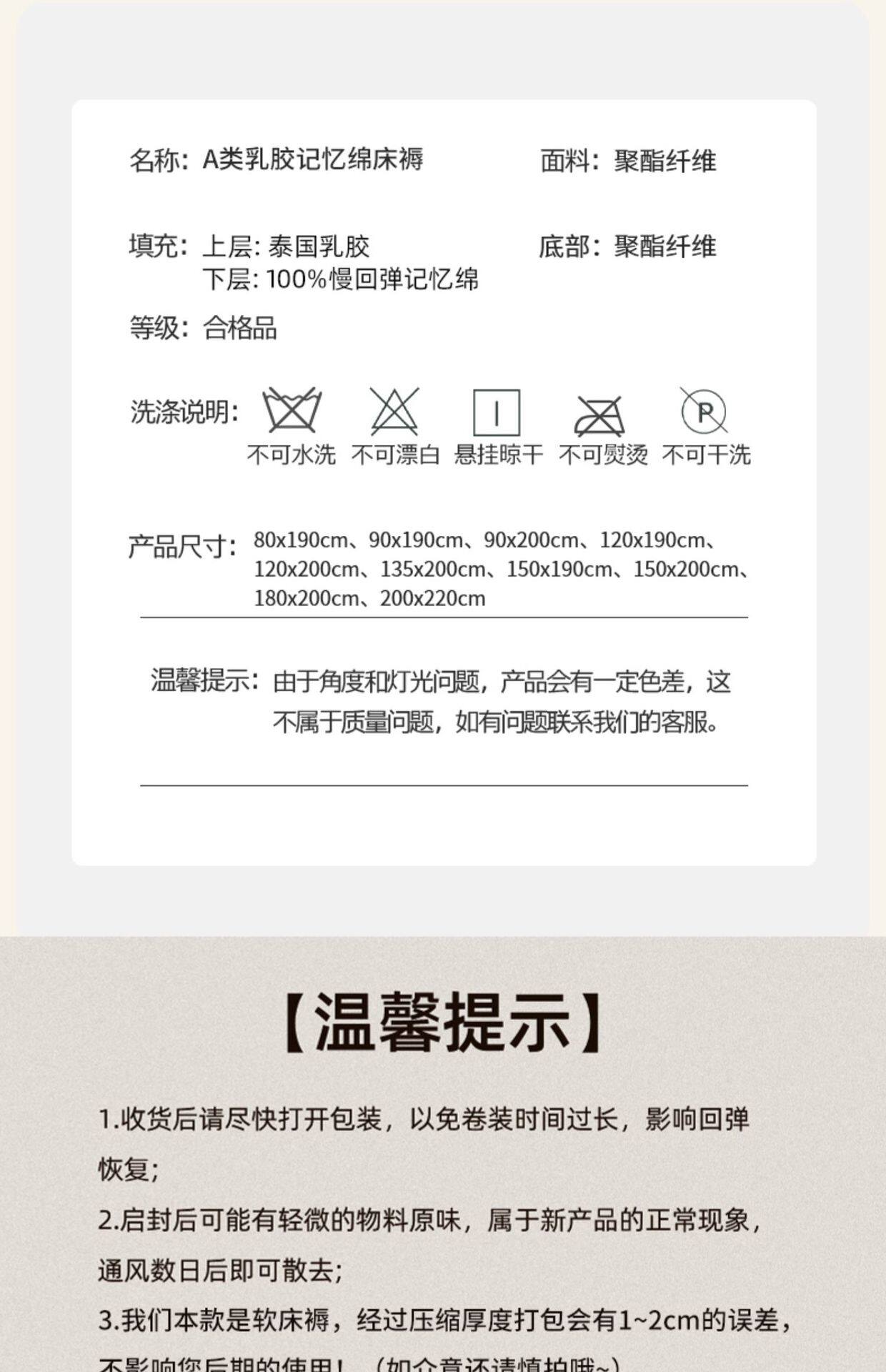| Color | [deep sleep model 4.0] white and green combination, about 6cm thick,[templar model 4.0] white and green combination, about 6cm thick,[deep sleep model 4.0] mitsubishi check white is about 6cm thick,[tempur model 4.0] mitsubishi grid white is about 6cm thick,[deep sleep model 4.0] mitsubishi gray gray about 6cm thick,[tempur model 4.0] mitsubishi gray gray about 6cm thick,[deep sleep model 4.0] dye-free blue and white, about 6cm thick,[deep sleep style 4.0] white and green combination, about 10cm thick,[tempur model 4.0] white and green combination, about 10cm thick,[deep sleep model 4.0] mitsubishi grid white is about 10cm thick,[templar model 4.0] mitsubishi grid white is about 10cm thick,[deep sleep model 4.0] mitsubishi gray gray about 10cm thick,[templar model 4.0] mitsubishi gray gray about 10cm thick,[deep sleep model 4.0] dye-free blue and white, about 9cm thick |