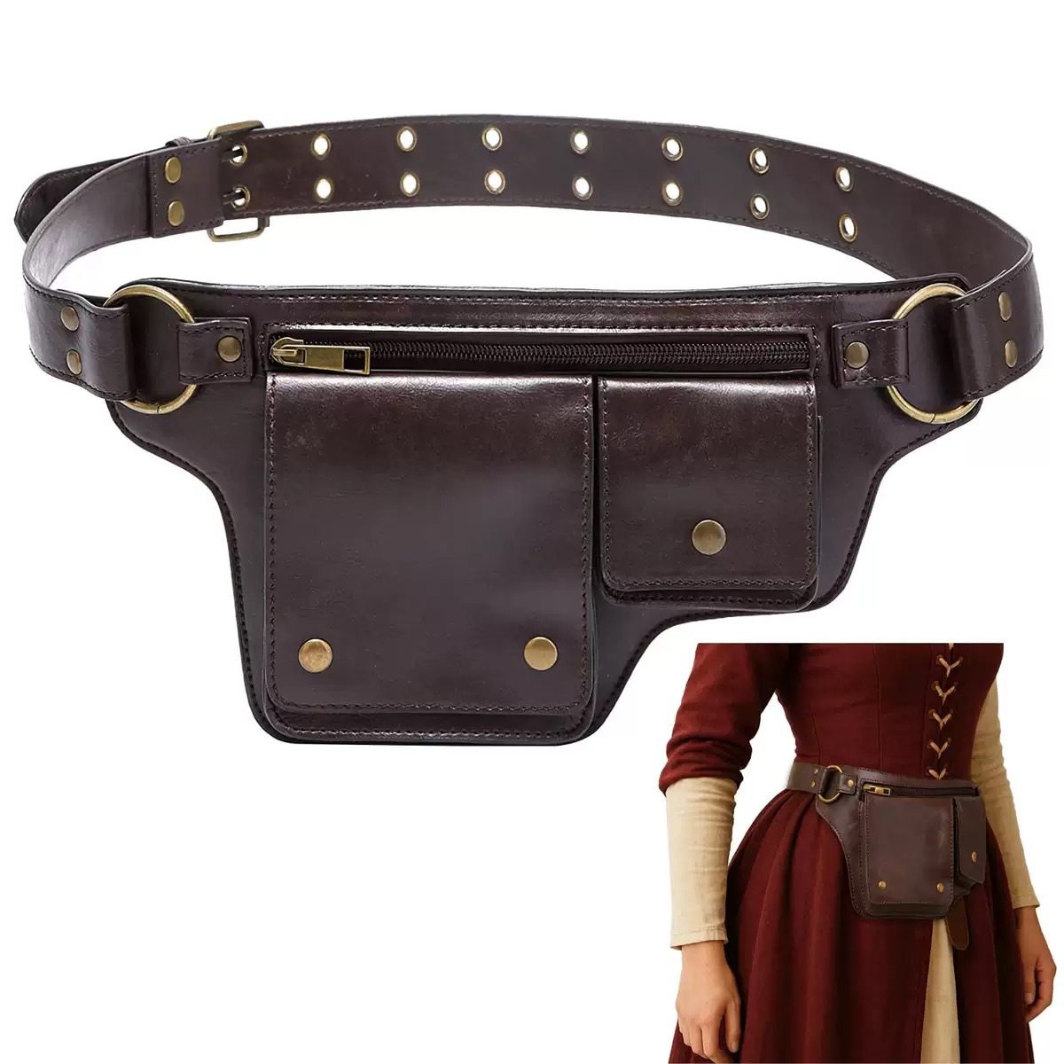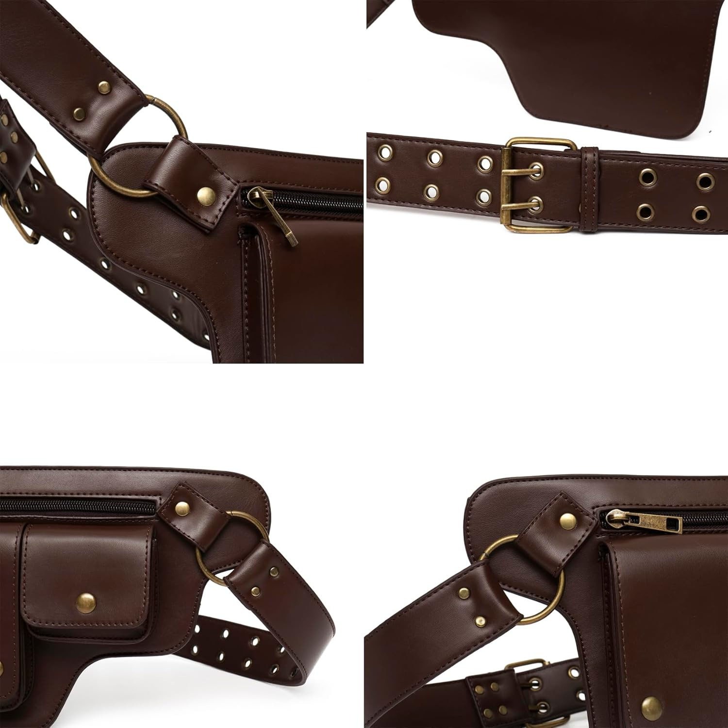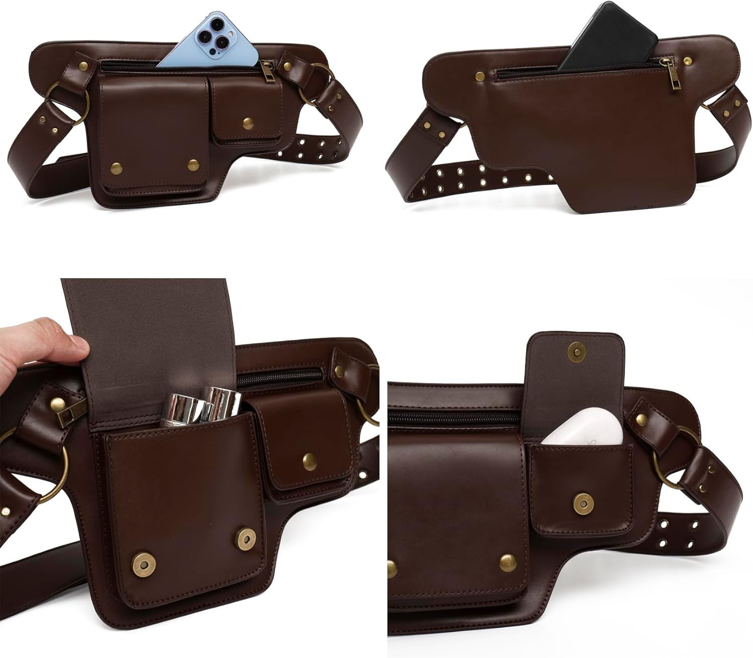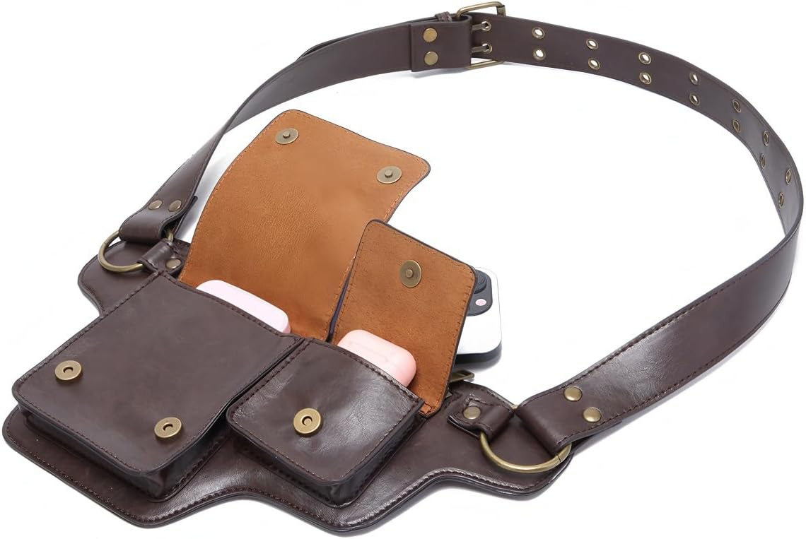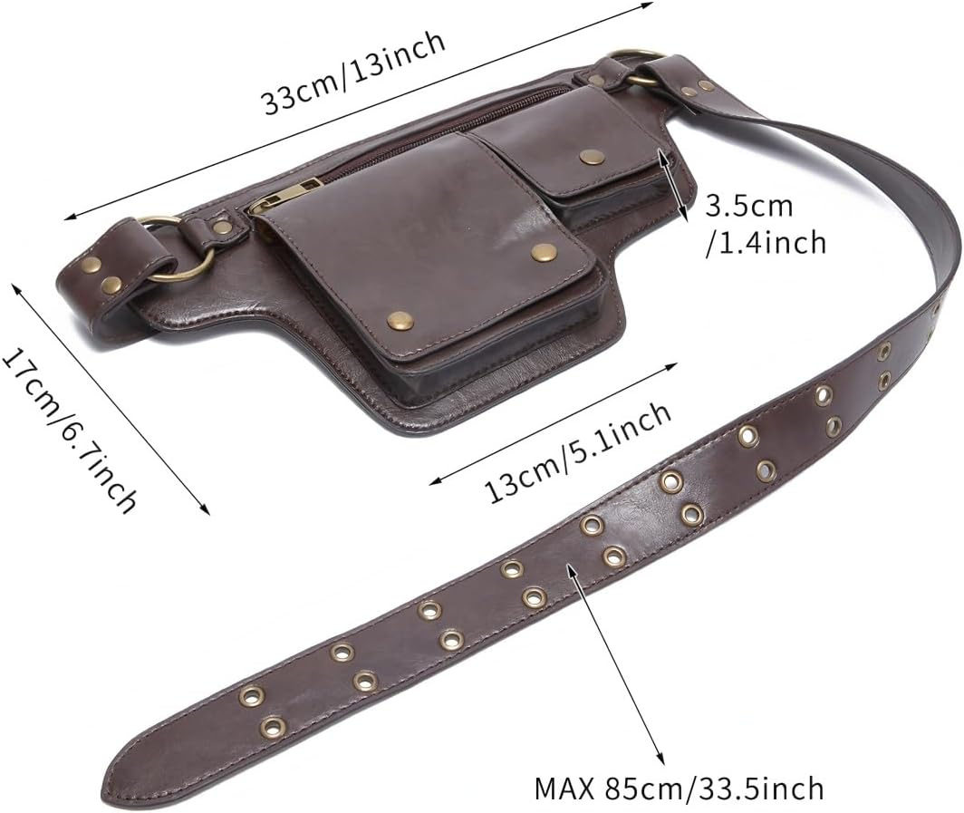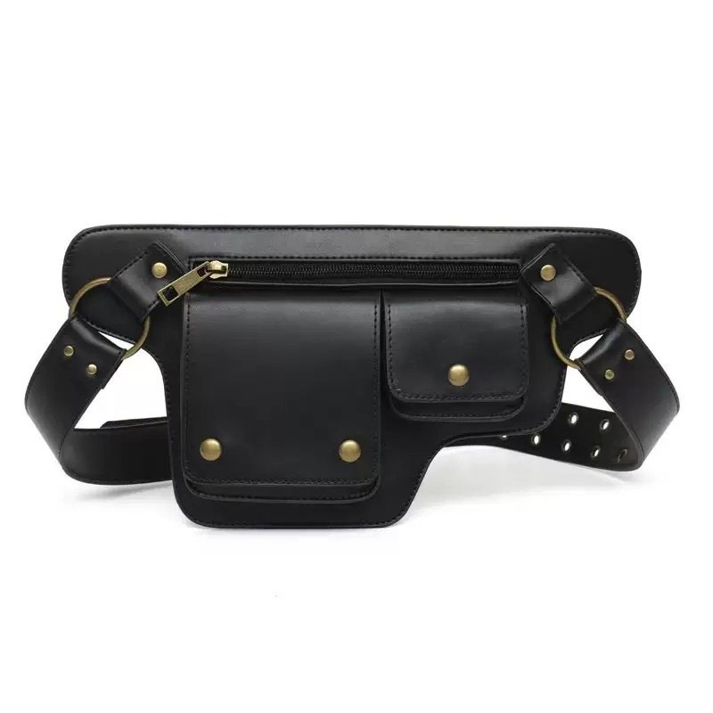 Amazon Pu Retro New Outdoor Men's Waist Bag Solid Color Zipper Waist Bag Leather Pin Buckle Waist Belt Personalized Versatile